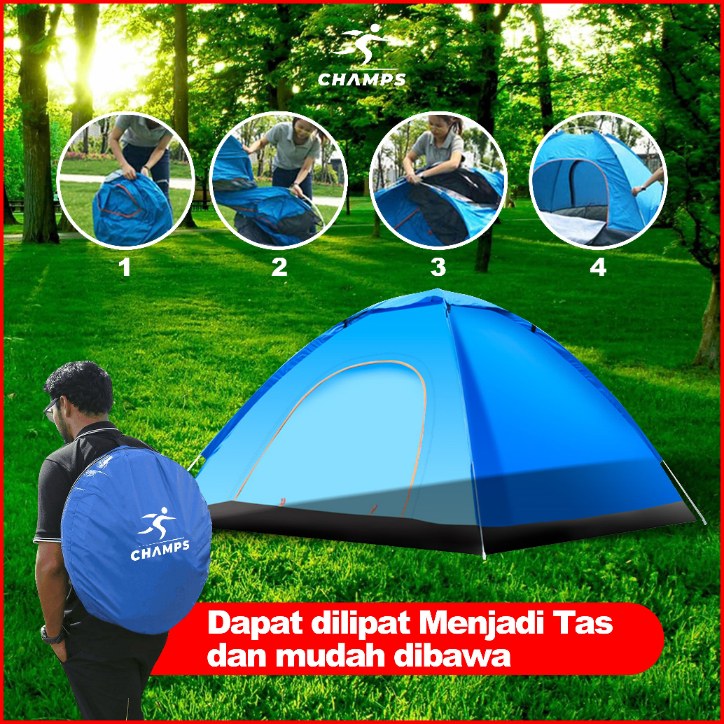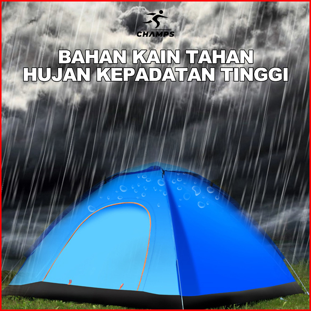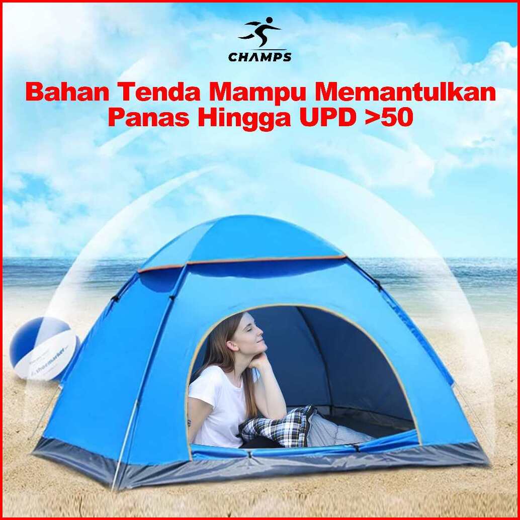 Champs Tenda Camping Otomatis 4-6 Orang Tenda Dome Biru Outdoor Indoor Gunung