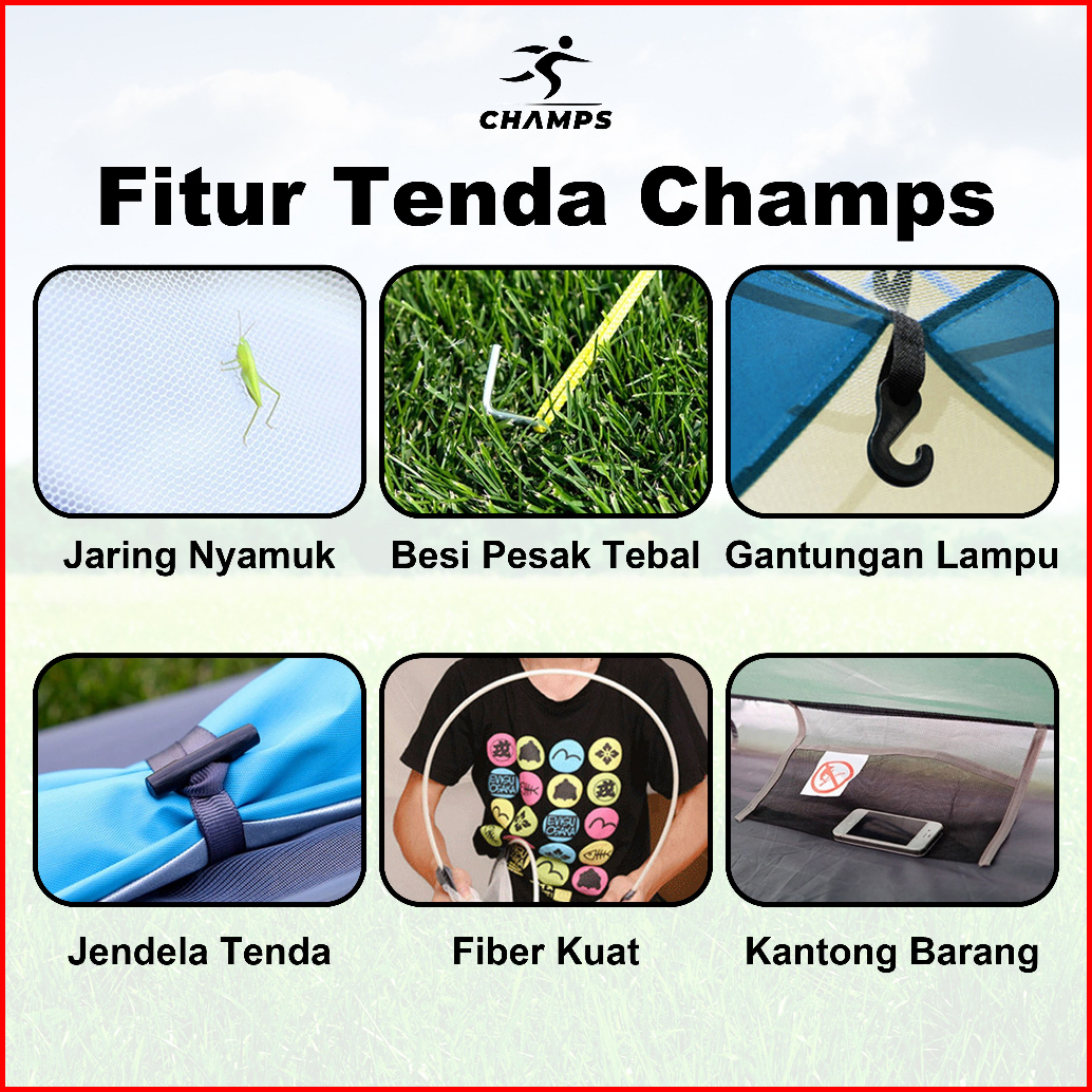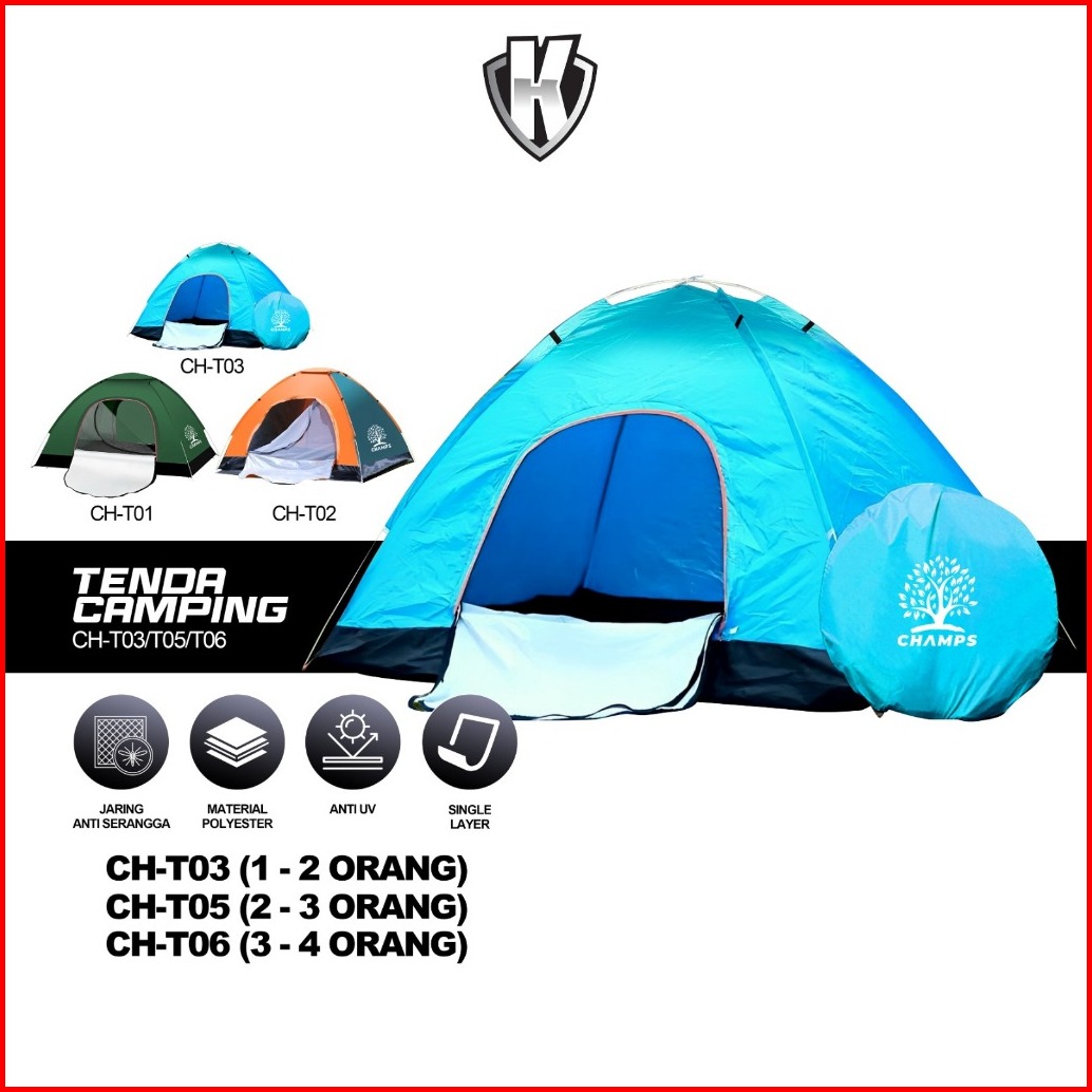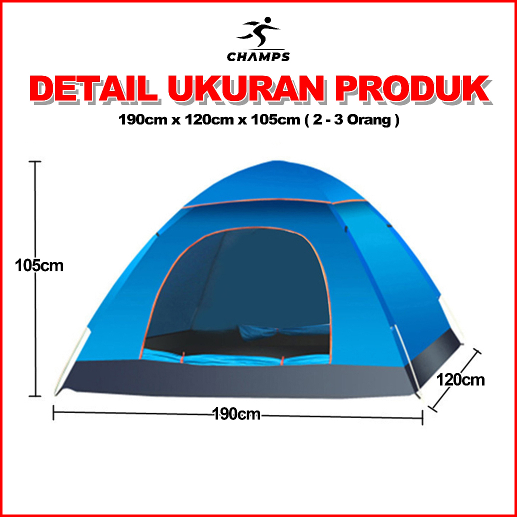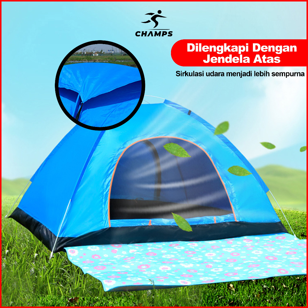 Champs Tenda Camping Otomatis 4-6 Orang Tenda Dome Biru Outdoor Indoor Gunung