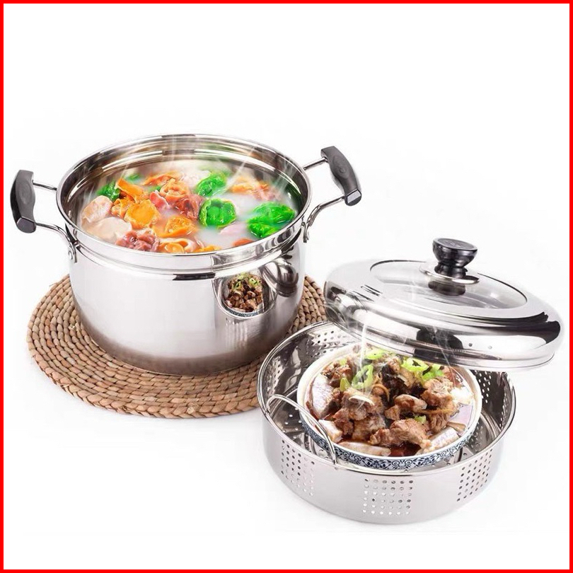 Panci Kukus Premium Japan Stainless Steel Sus304 Tebal Dengan Steamer 24 26 28 30cm Panci Panca Guna Dengan Tutup Kaca T