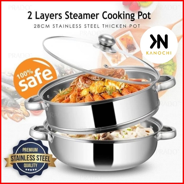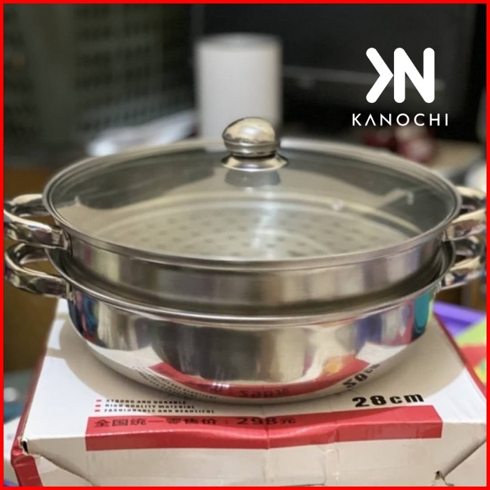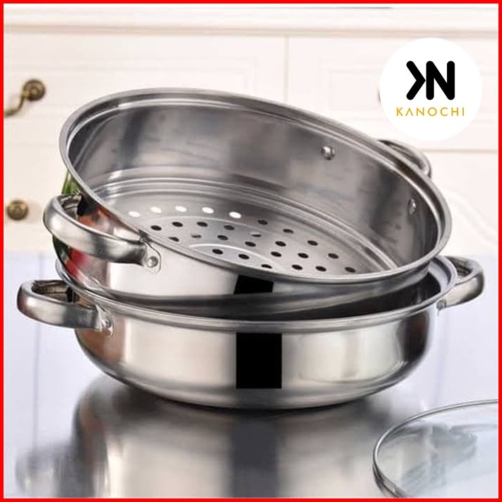 Panci Kukus Kukusan 28cm Double Stainless Steel Steamer Pan Dandang