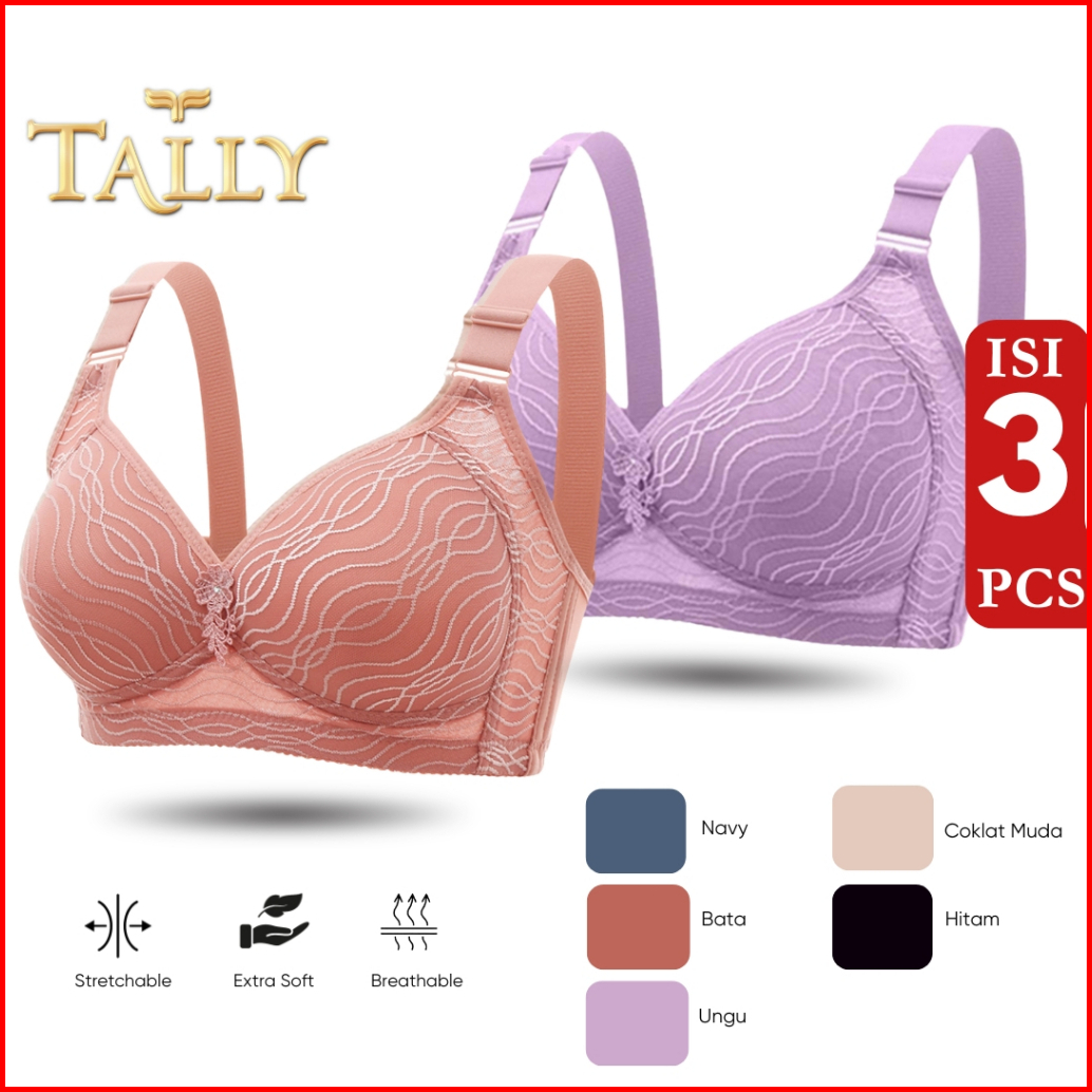 Tally Paket 3 Pcs Bh 3318 Bra Tanpa Kawat Bahan Katun Busa Tipis Cup B - C Kait 4 Bra Harian