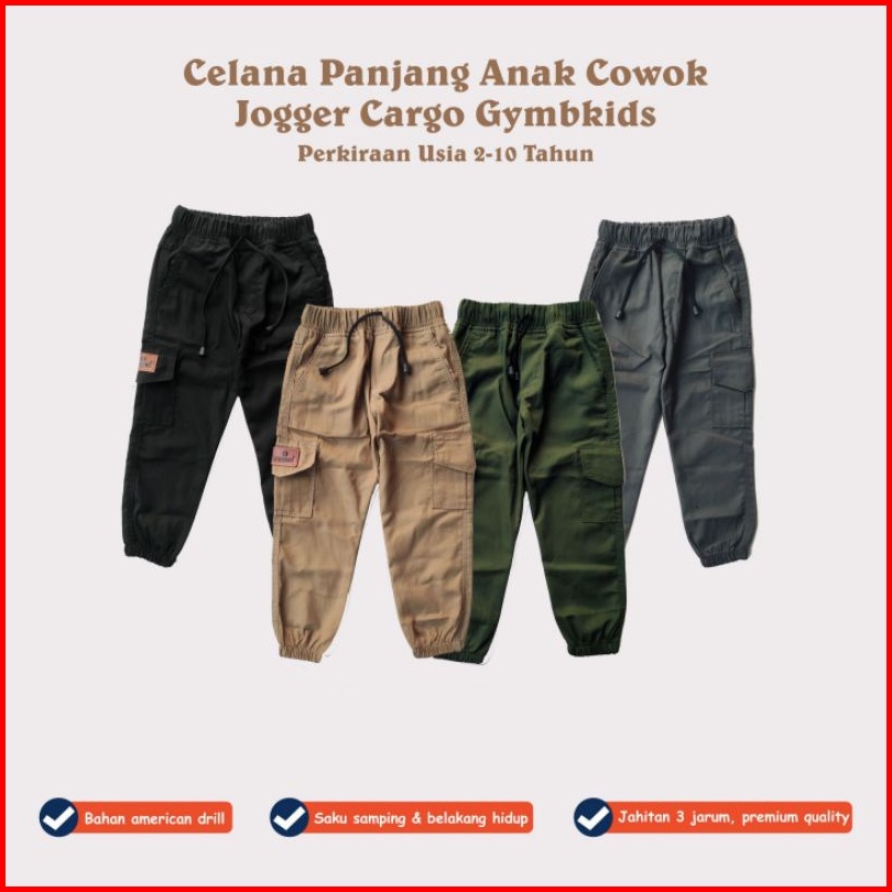 Gymbkids 2-10thn Jogger Joger Chino Chinos Cargo Anak Laki Laki Cowok Bahan Katun Drill Premium