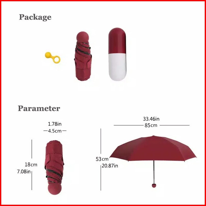 490 Payung Kapsul Lipat 5 Payung Mini Kotak Ring Holder Anti Uv