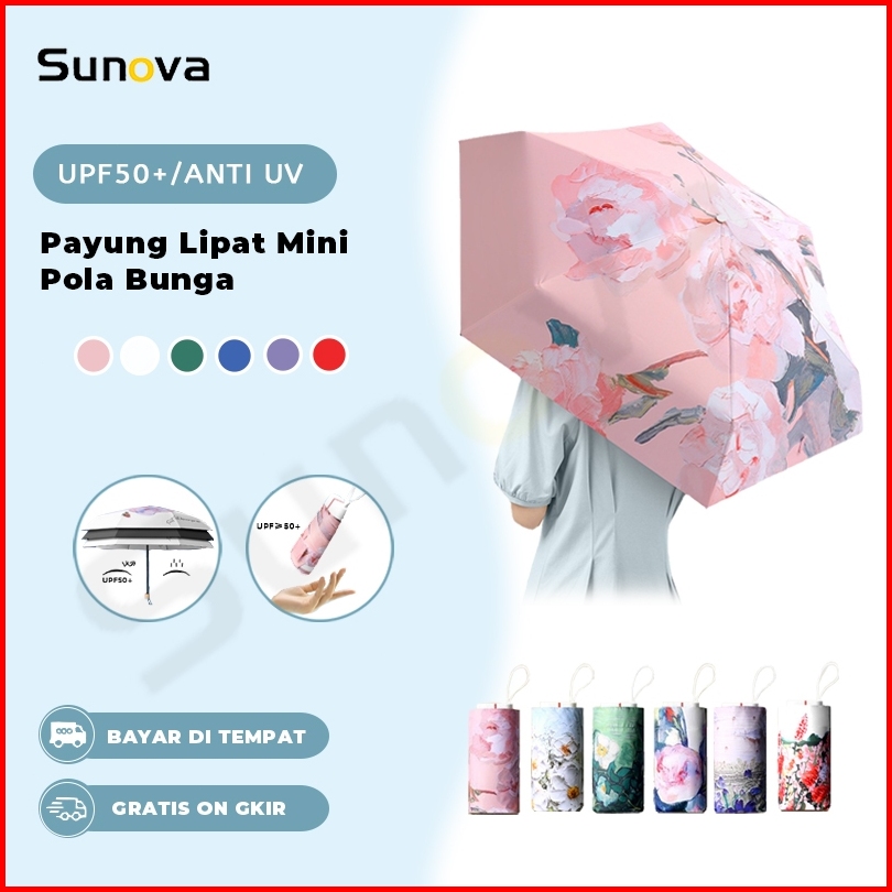 Sunova Payung Lipat Mini Anti Uv Sinar Matahari Payung Mini Pola Bunga Portable Cute Hampers