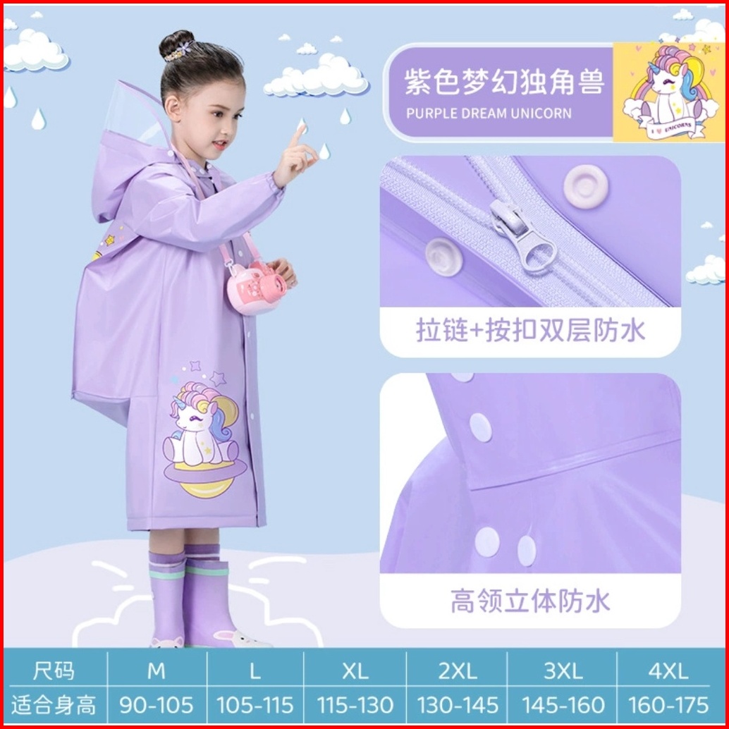 Jas Hujan Terusan Anak Unicorn Ransel 5-12 Tahun