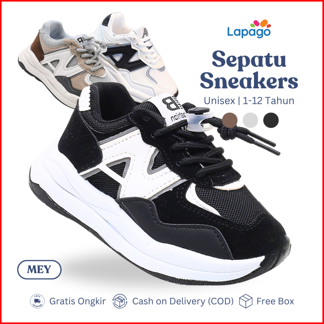 Lapago Free Box Sepatu Sneakers Casual Anak Laki Laki Perempuan Usia 1 - 12 Tahun Type Mey