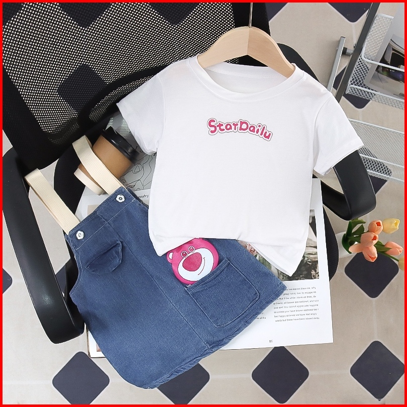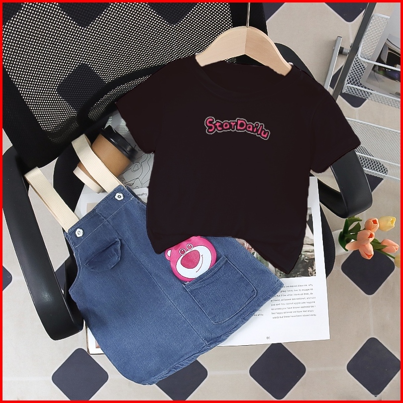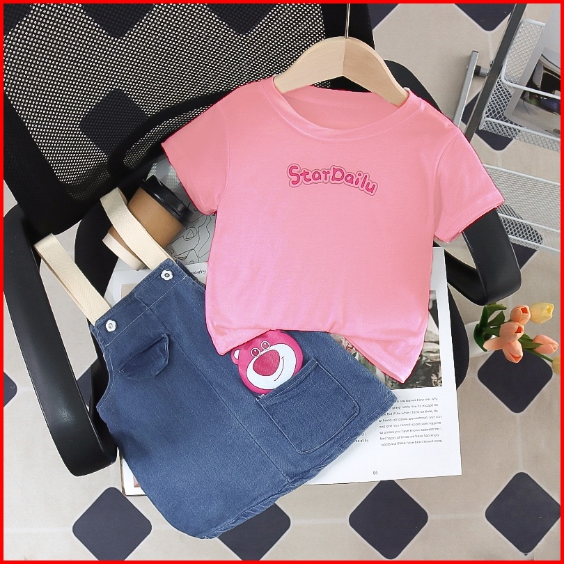 Setelan Overall Anak Perempuan Motif Lotso Soft Jeans Usia 0-4tahun