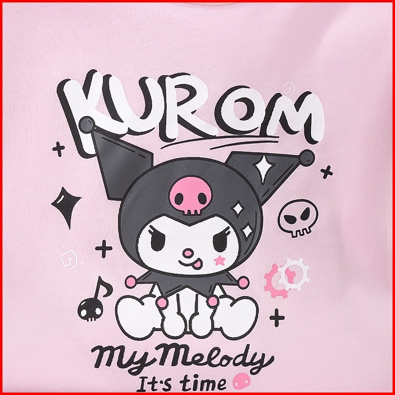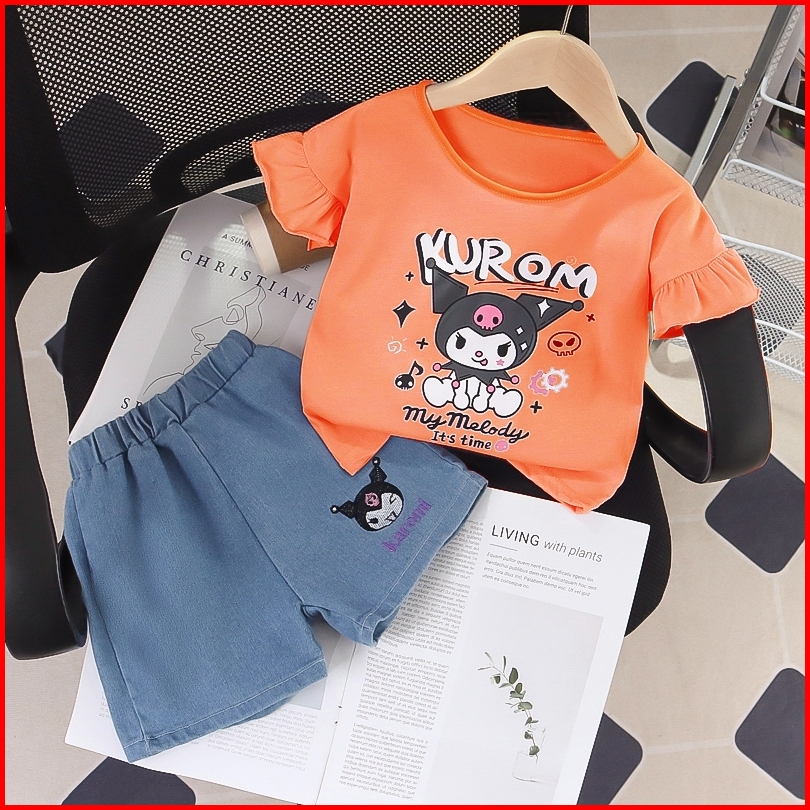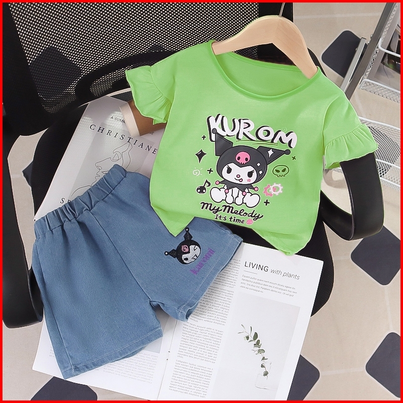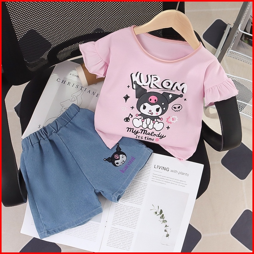 Setelan Baju Anak Perempuan Motif Kuromi Lucu Celana Pendek New Trendy Usia 1-5tahun