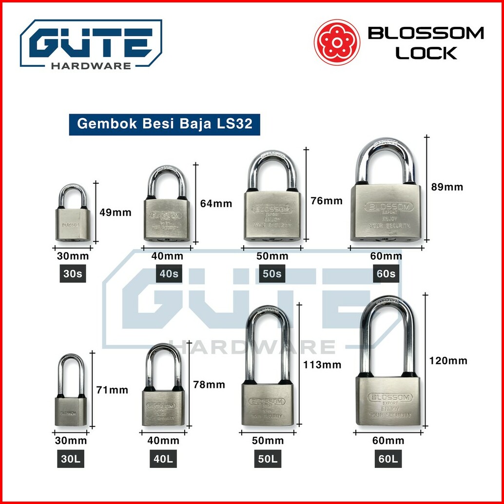 Gembok Besi Baja Blossom Tipe Ls 32 Best Seller Untuk Pintu Pagar Kantor Toko Gudang