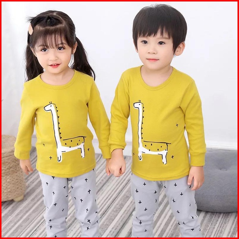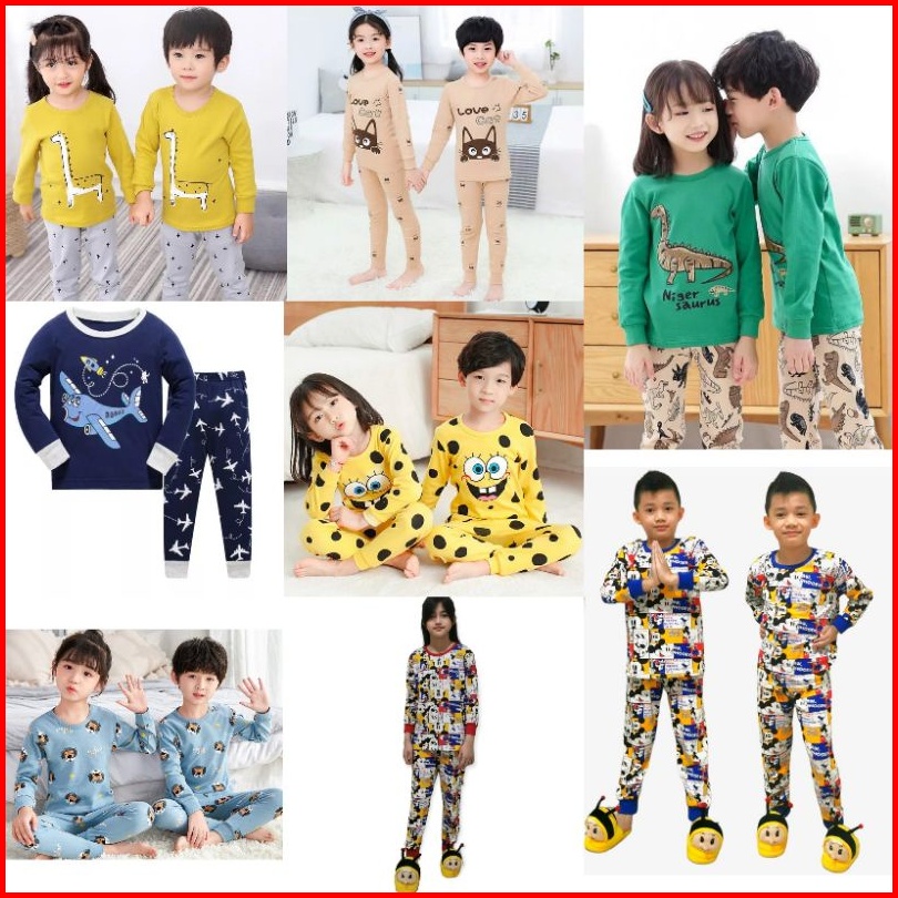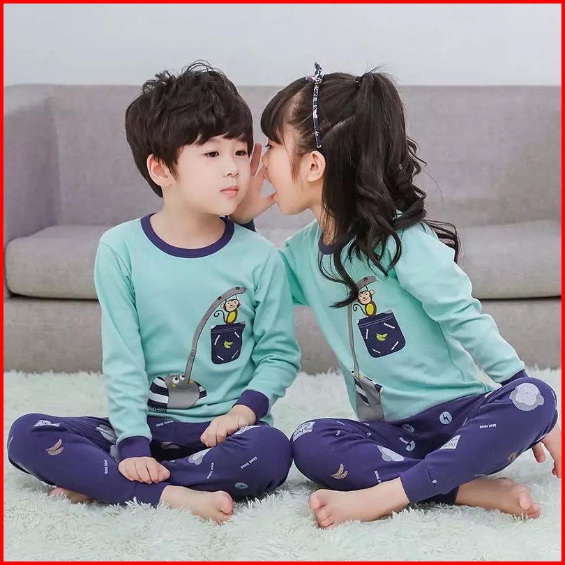 Baju Tidur Anak Setelan Anak Unisex Baju Tidur Anak Lengan Panjang Setelan Panjang Anak 1-12 Tahun Malvin