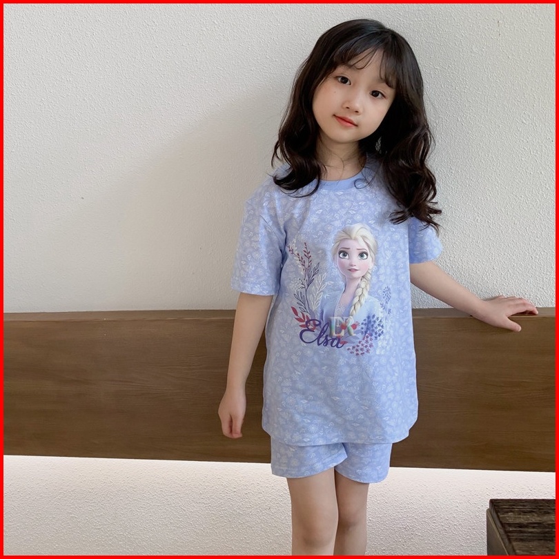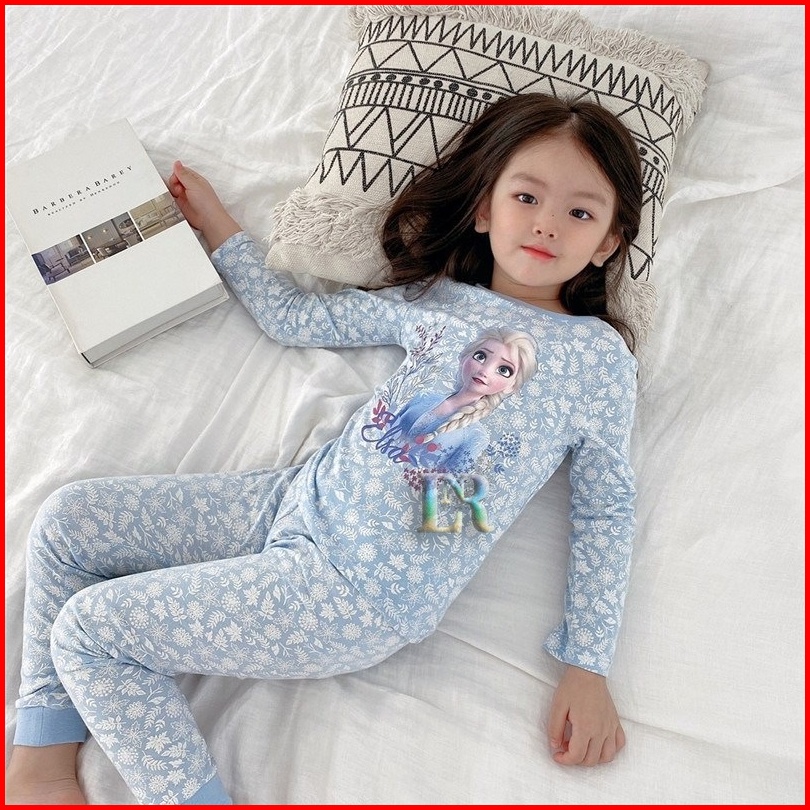 Lnr Shop Pa-018 Piyama Anak Perempuan Frozen Elsa Baju Tidur Setelan Lengan Panjang Lengan Pendek Celana Panjang Pendek