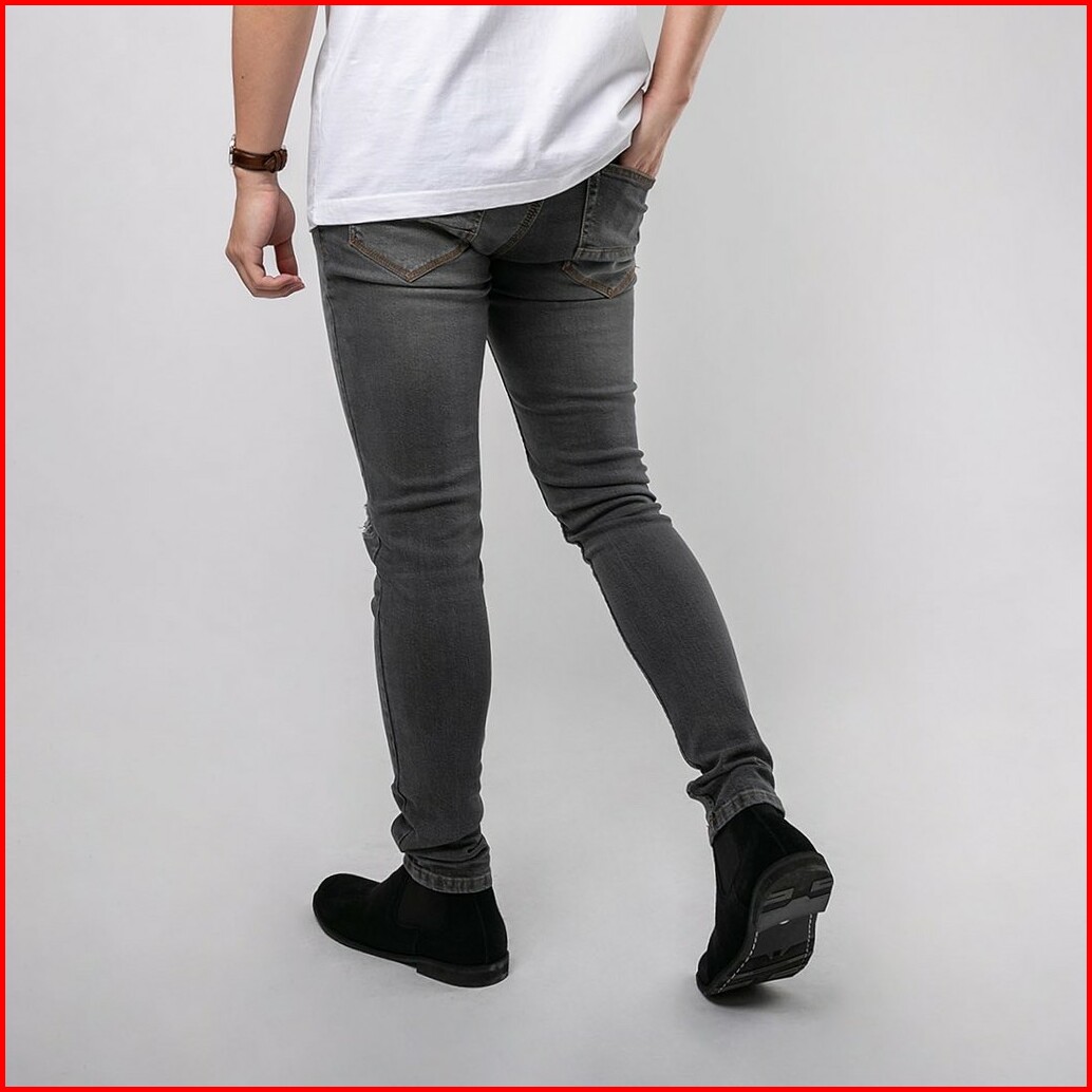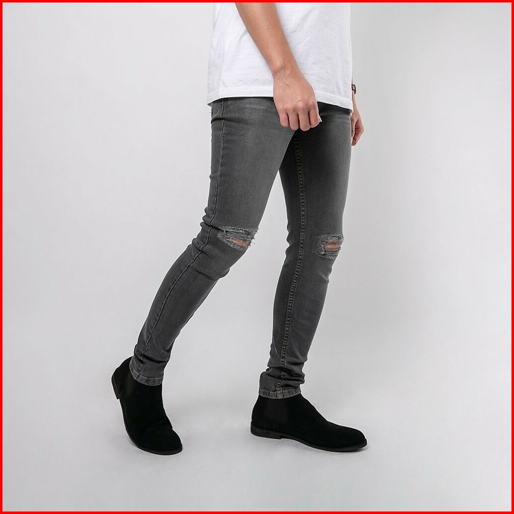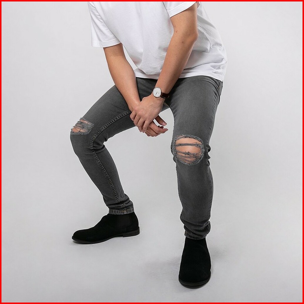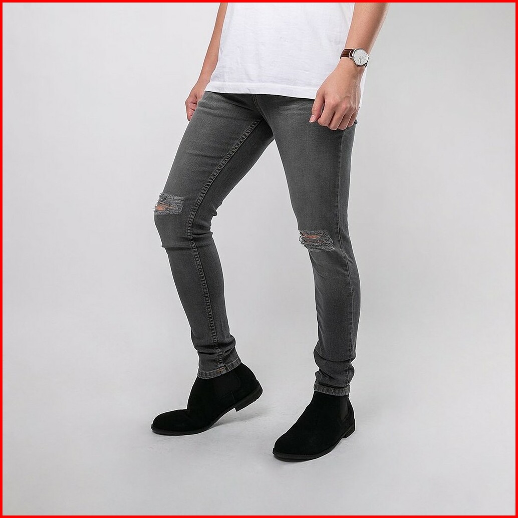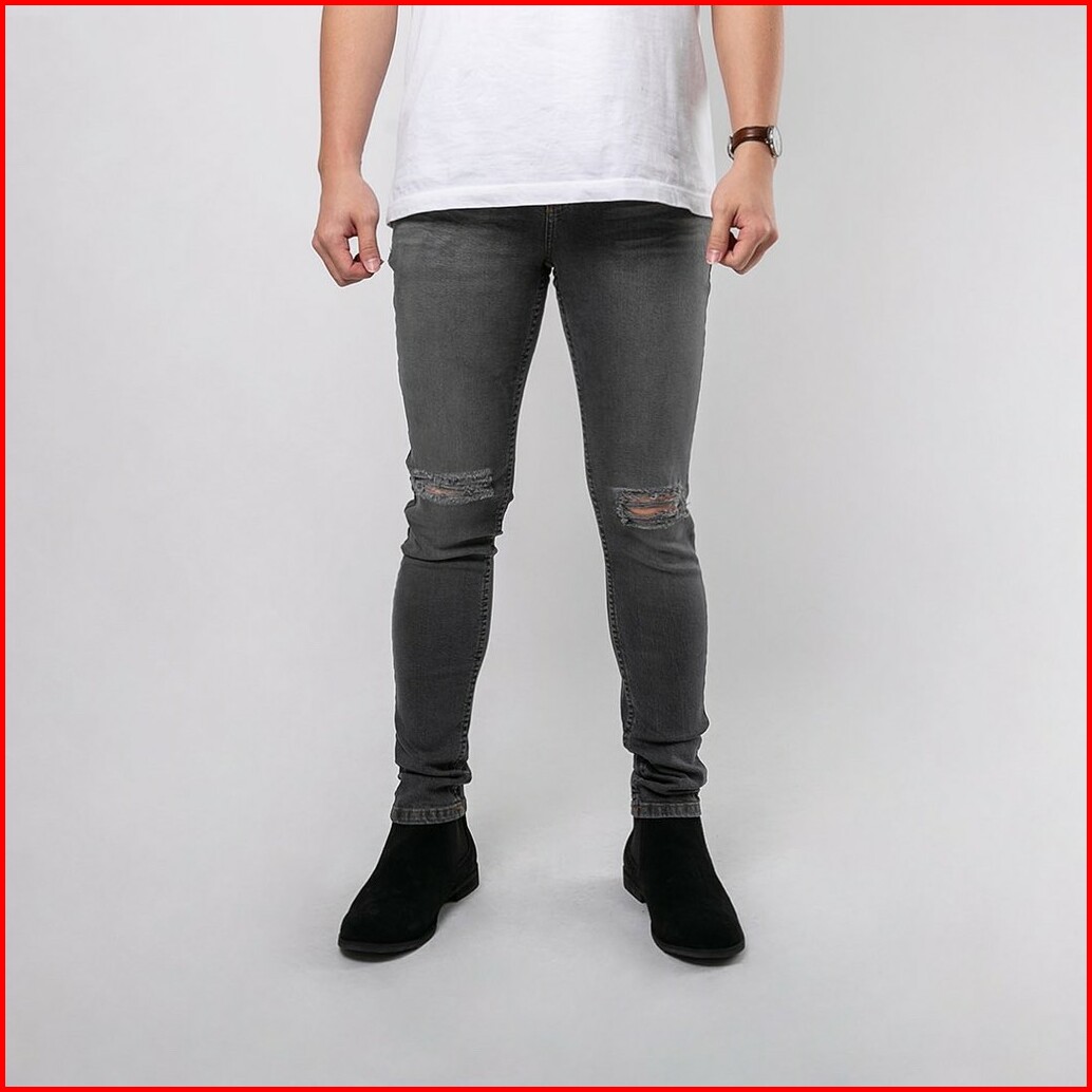 Celana Ripped Jeans Pria Celana Jeans Sobek Bahan Stretch Denim - Uj-17 - Dark Grey