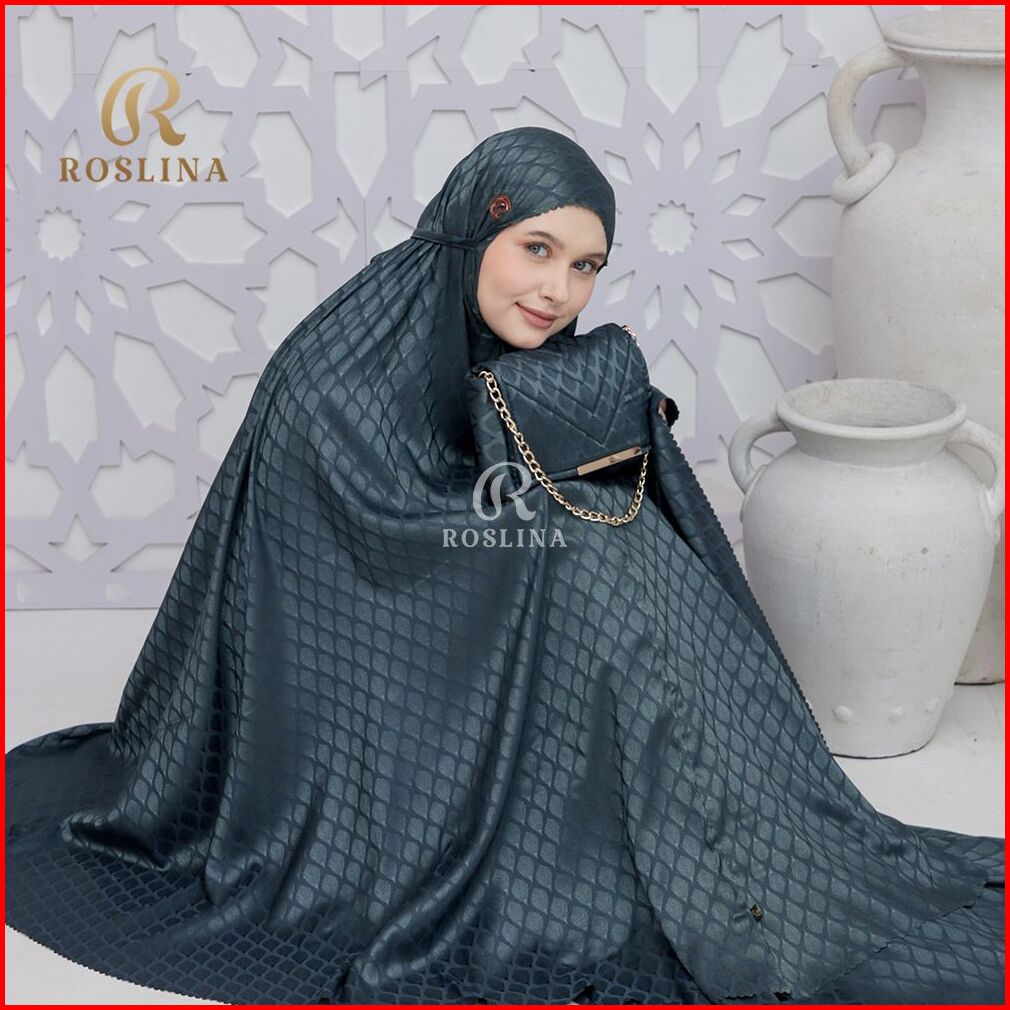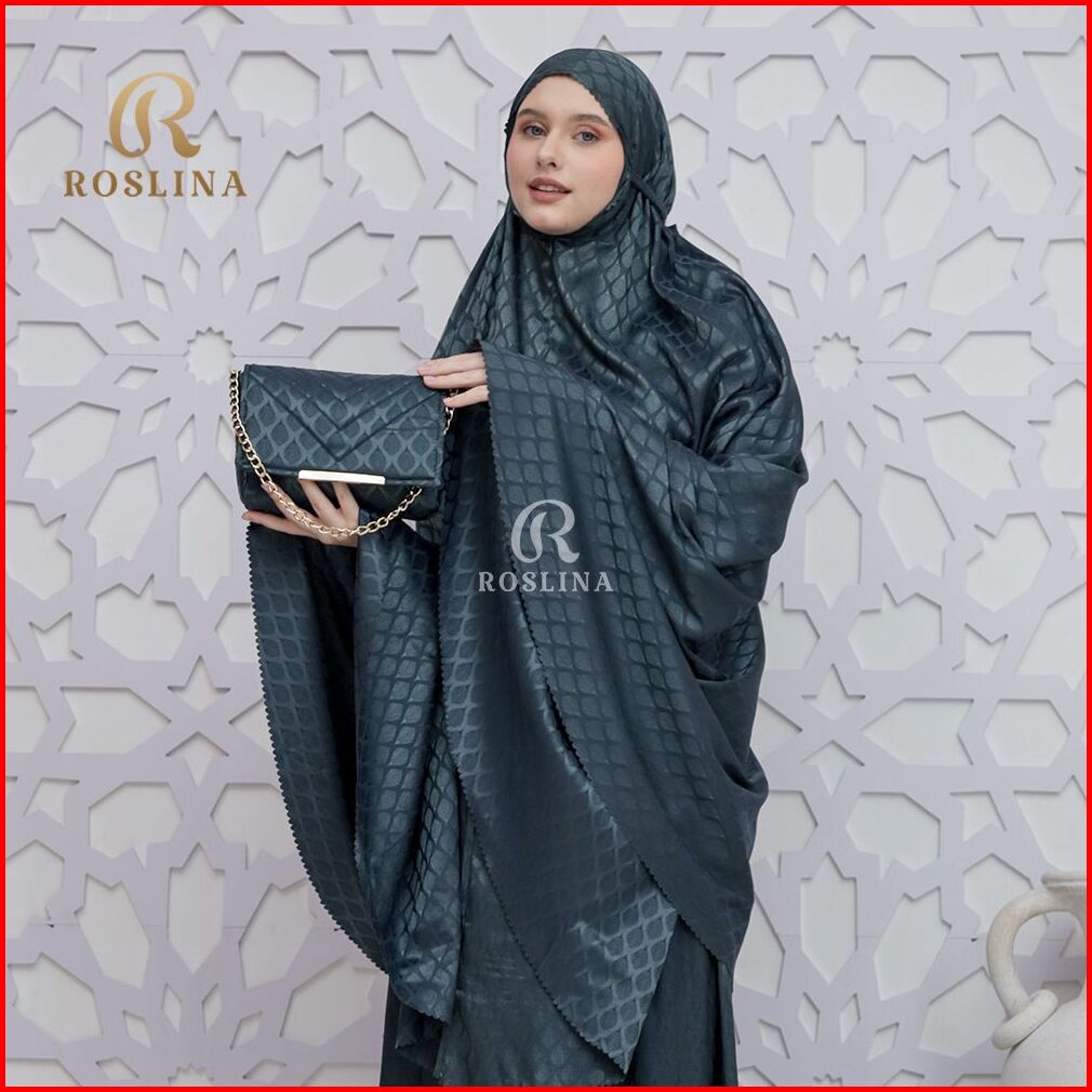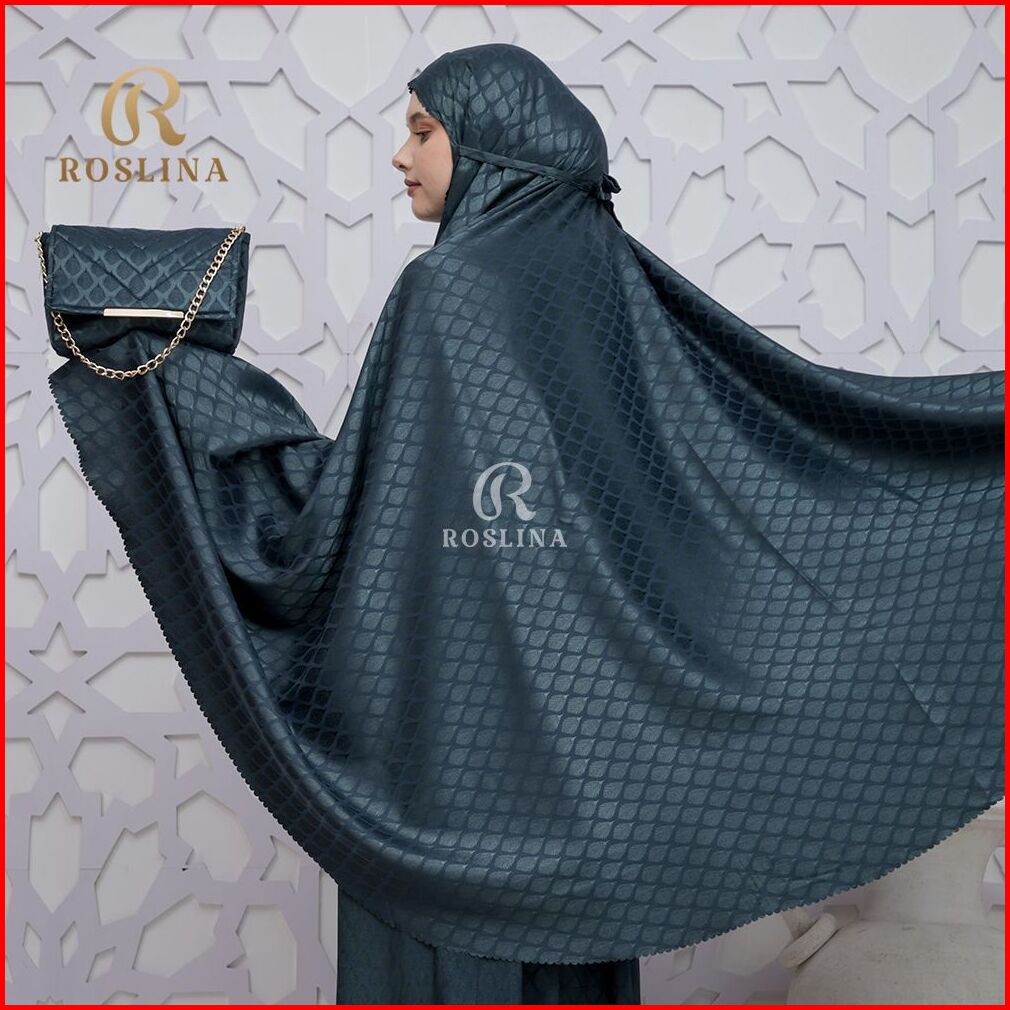Roslina Mukena Santorini Jumbo Silk Motif Printing Laser Cut Premium