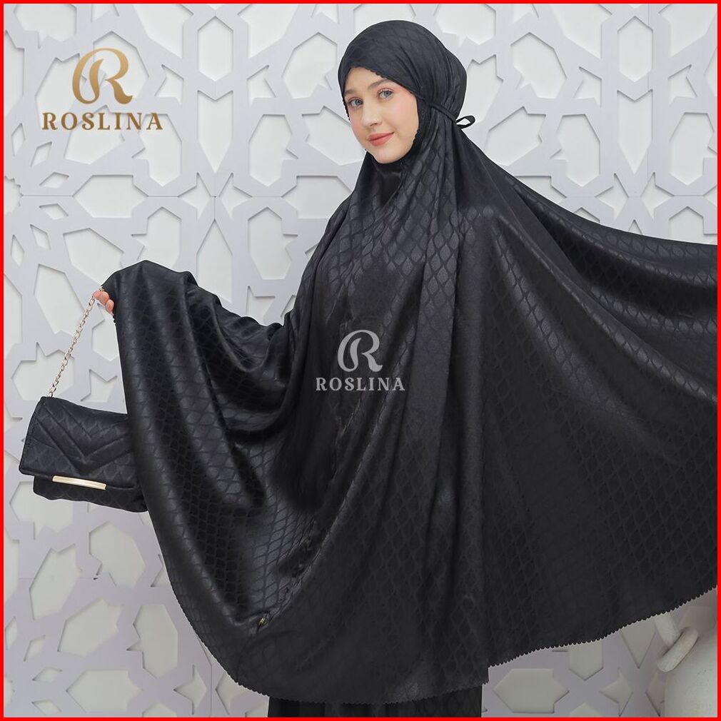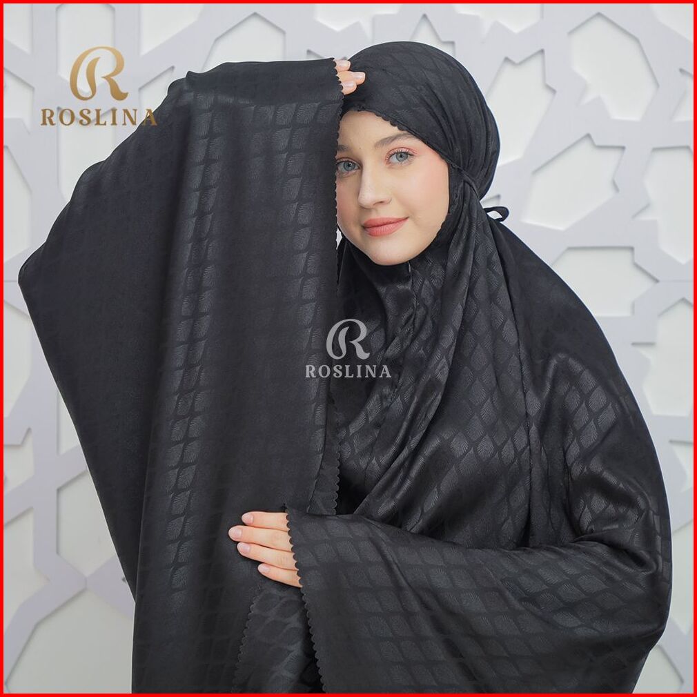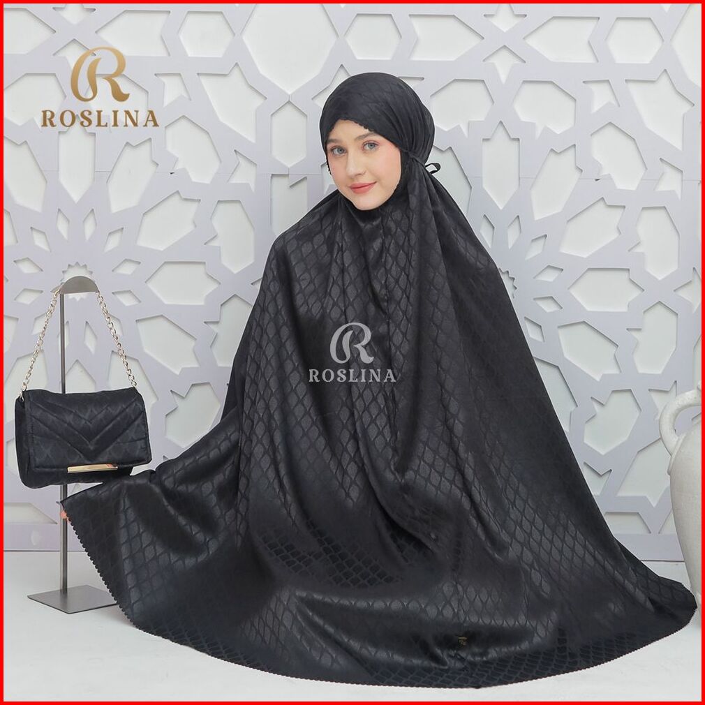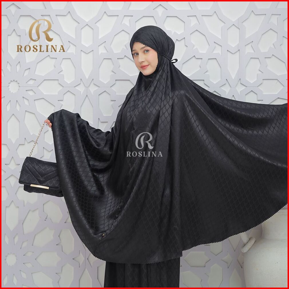 Roslina Mukena Santorini Jumbo Silk Motif Printing Laser Cut Premium