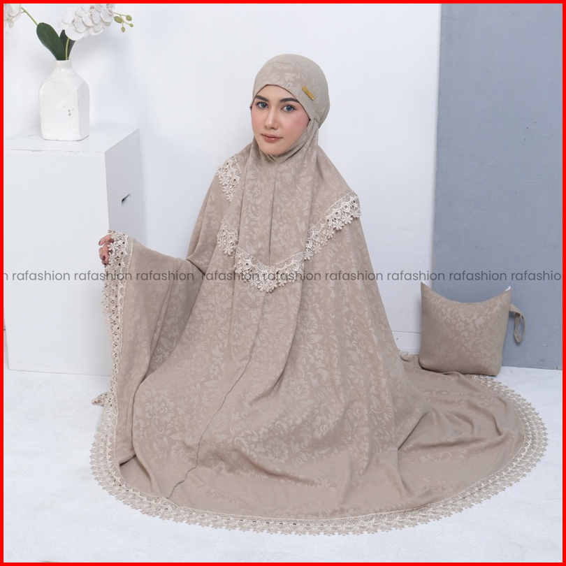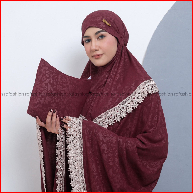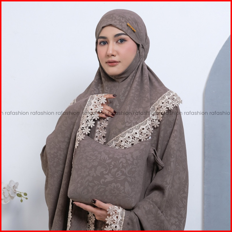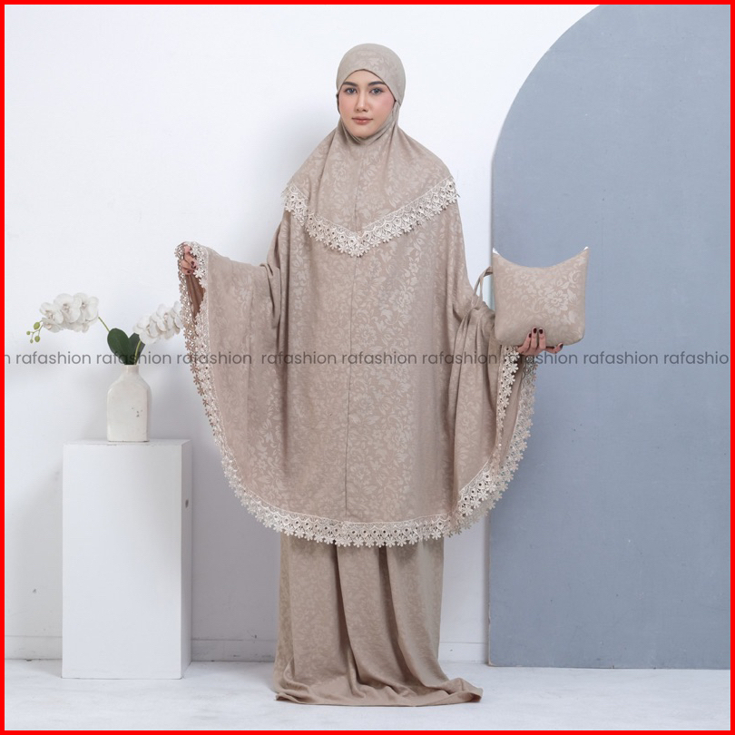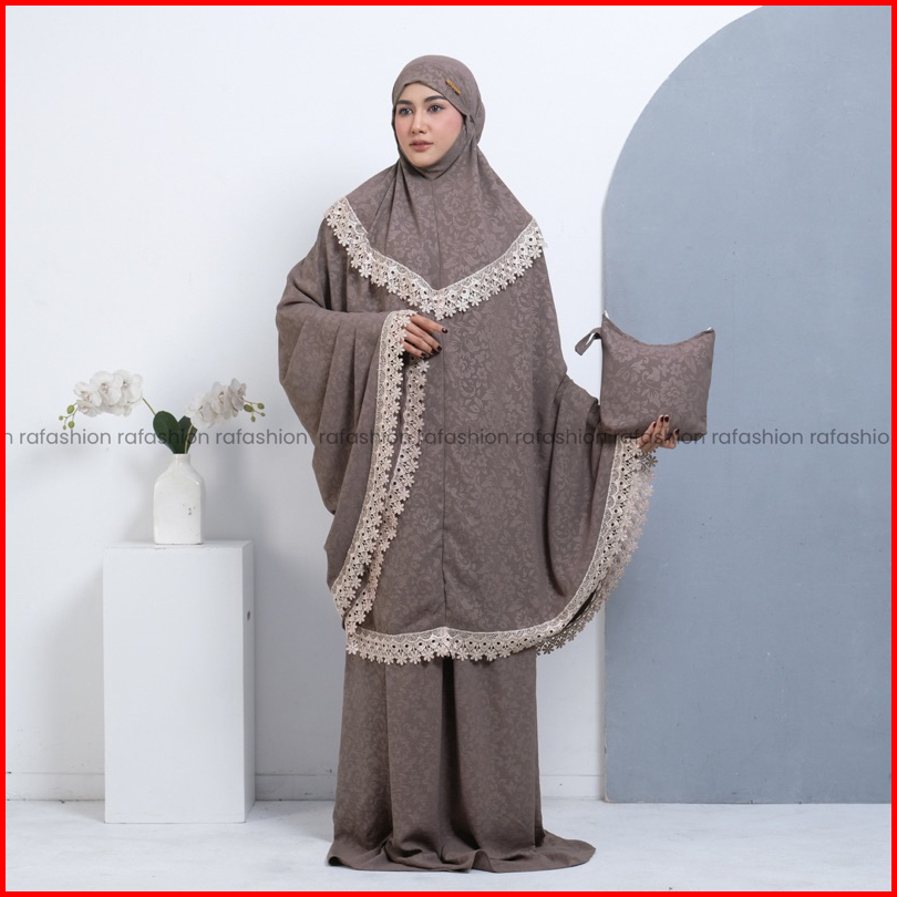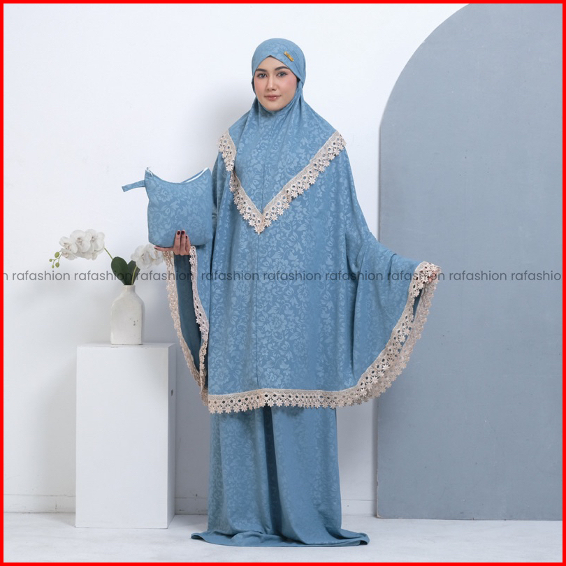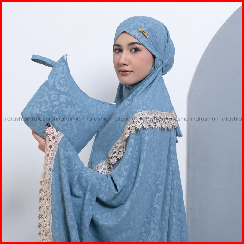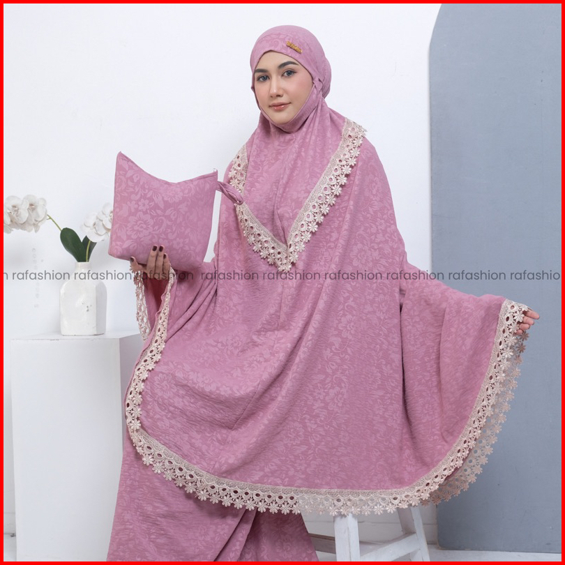 Ra Fashion - Mukena Vahira Dewasa Embos Crinkle Airflow Syari Dagu Jumbo Motif Bunga Mewah Renda Kalung Bawah Nyaman Can