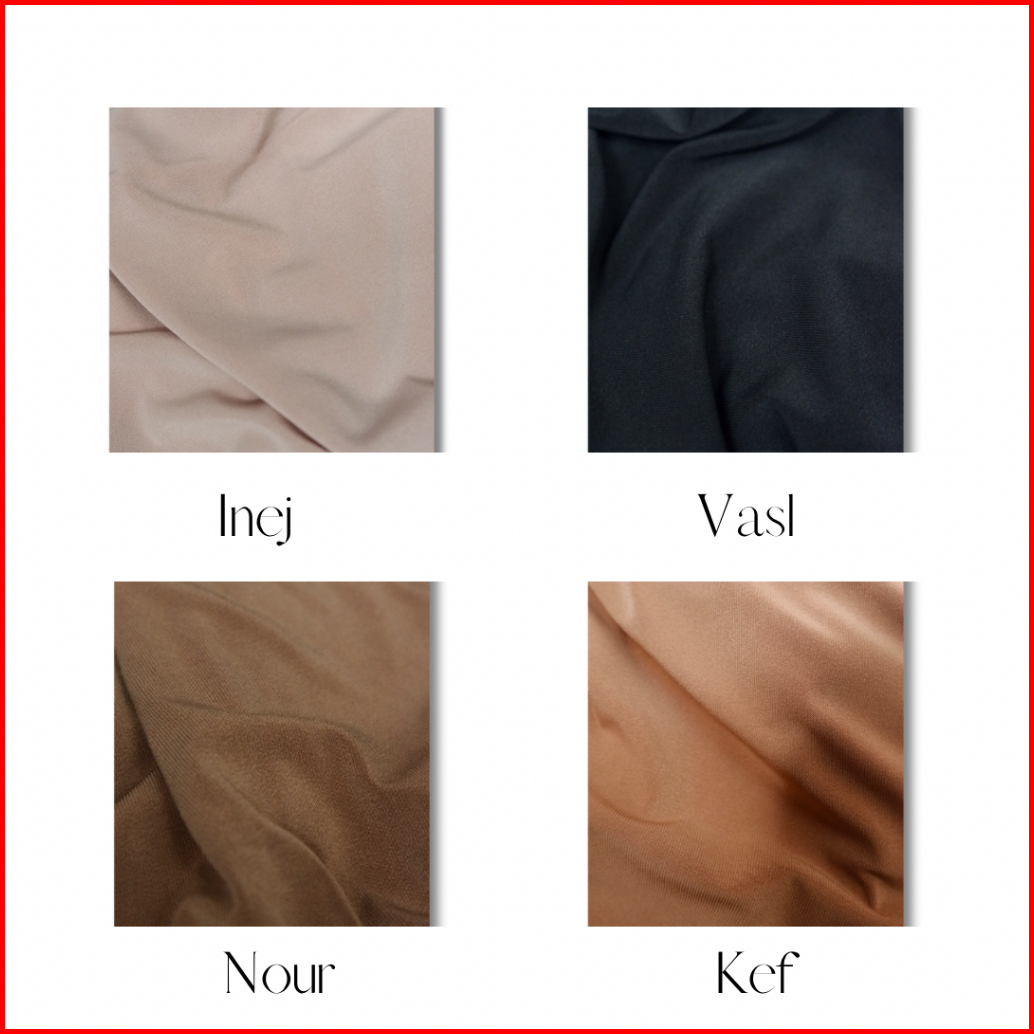 Inej, Vasl, Nour, Kefi, Elide, Olive, Charcoal, Mustard, Mauve, Nutella, Taupe, Dark Purple, Salmon, Maroon, Cream, Stone, Choco, BW, Navy, Terracotta, Denim, Sage, Mocca, Rust, Burgundy, Beige, Sky Blue, Soft Pink