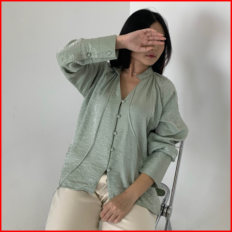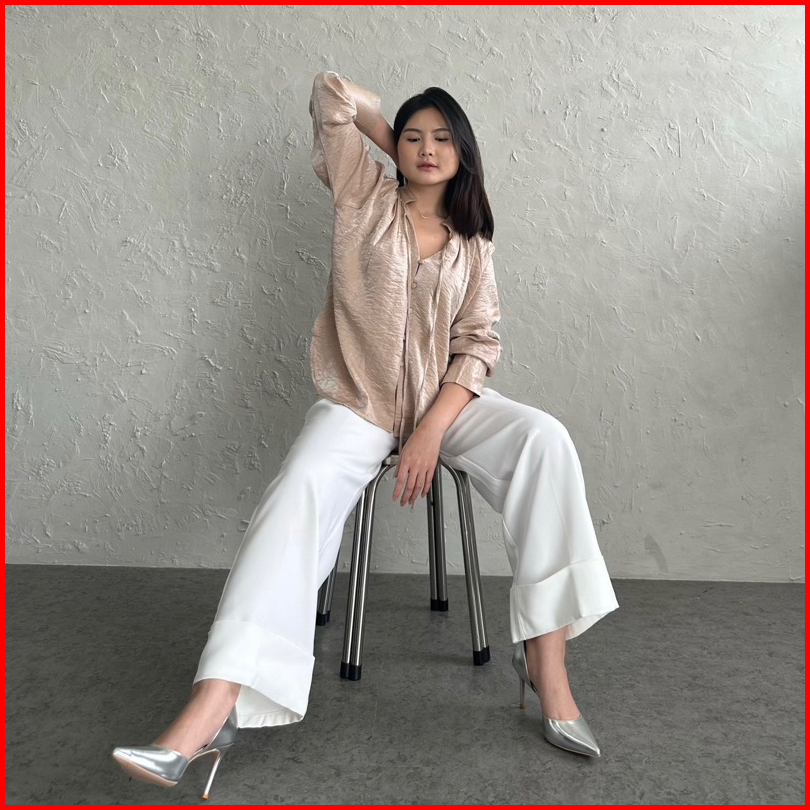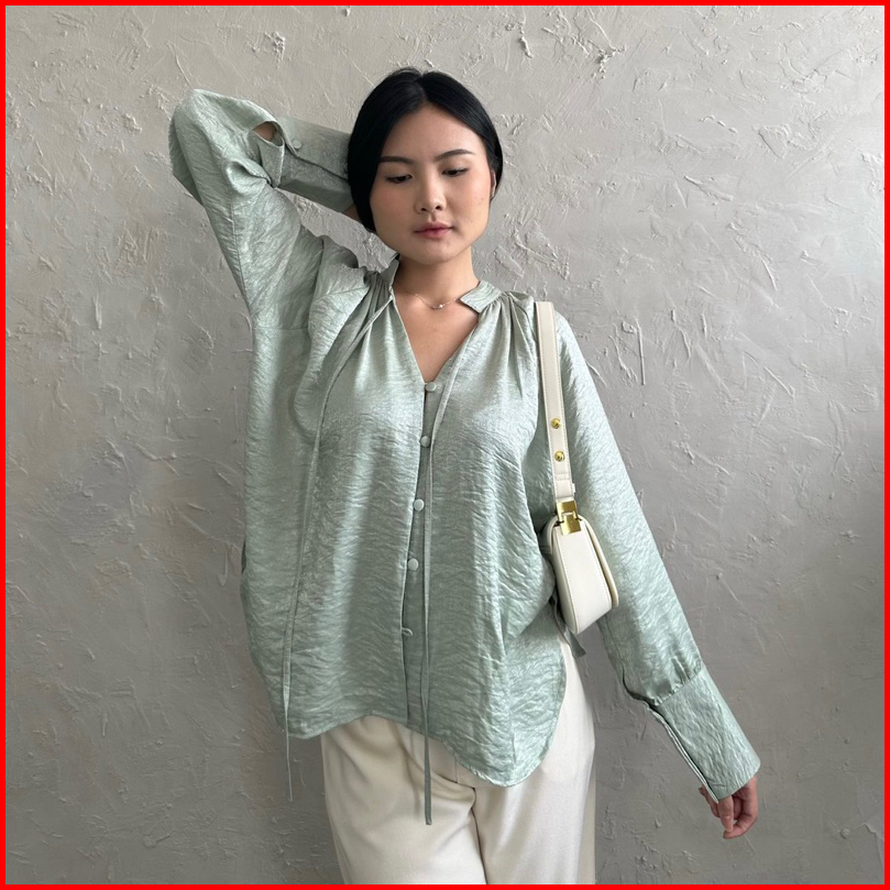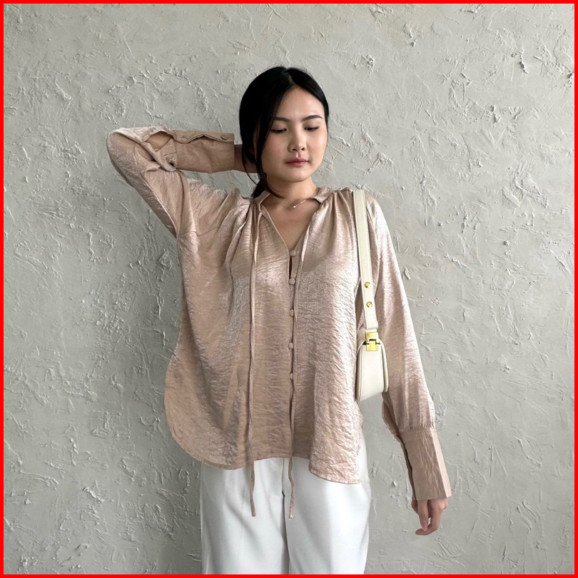 Esme Shirt Satin Crinkle Oversized Elegan