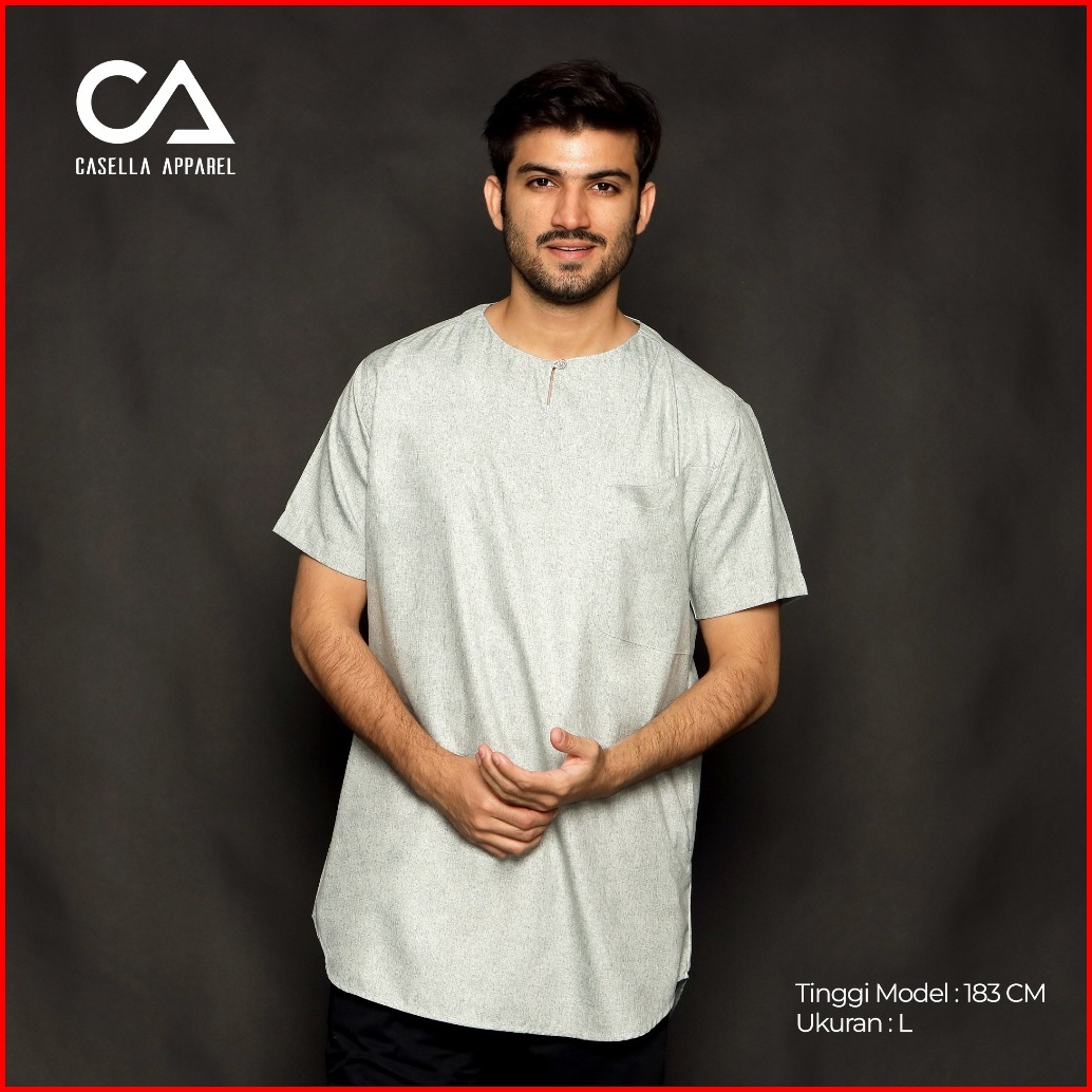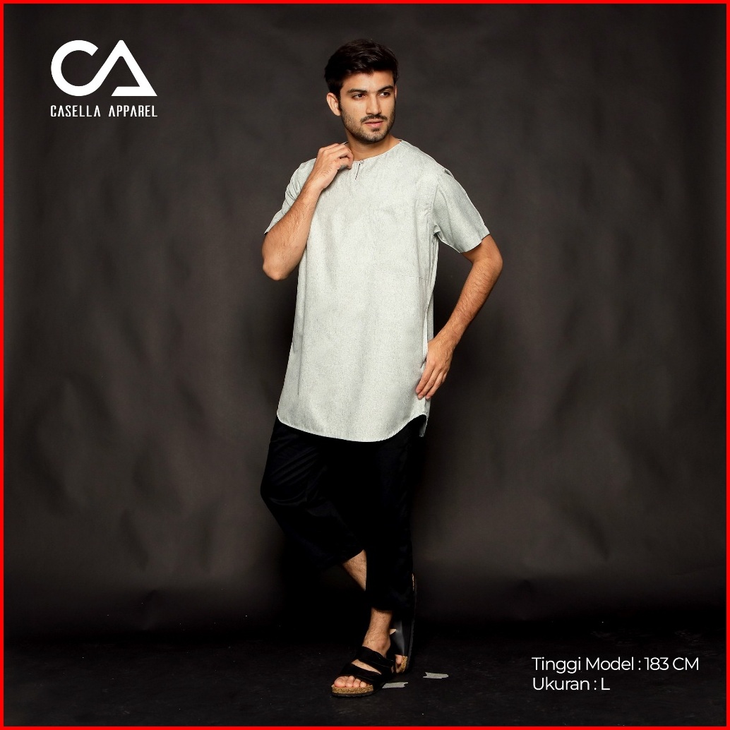 Casella Baju Koko Kurta Pria Lengan Pendek Two Tone Muslim Daily Wear Umar 3002 Lime