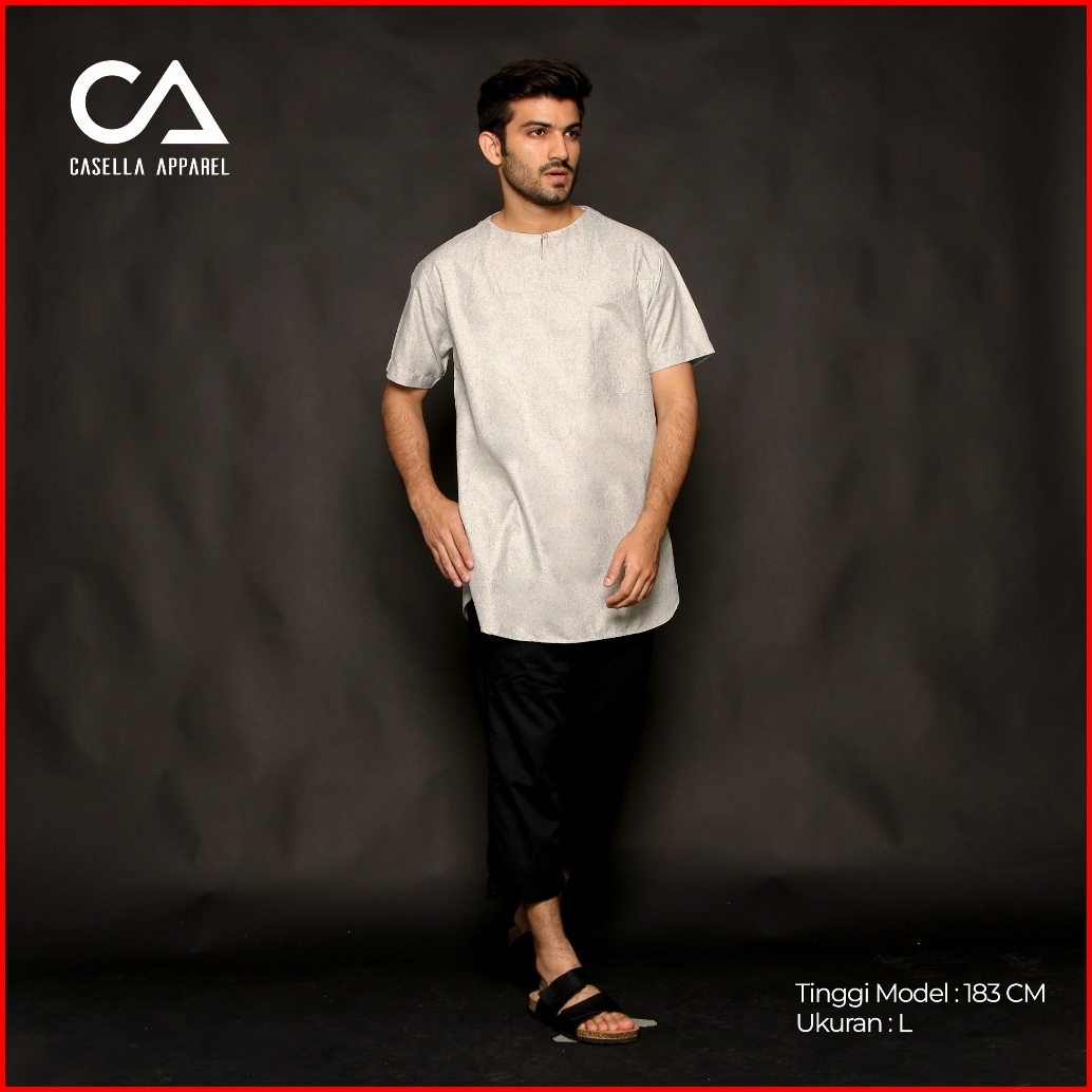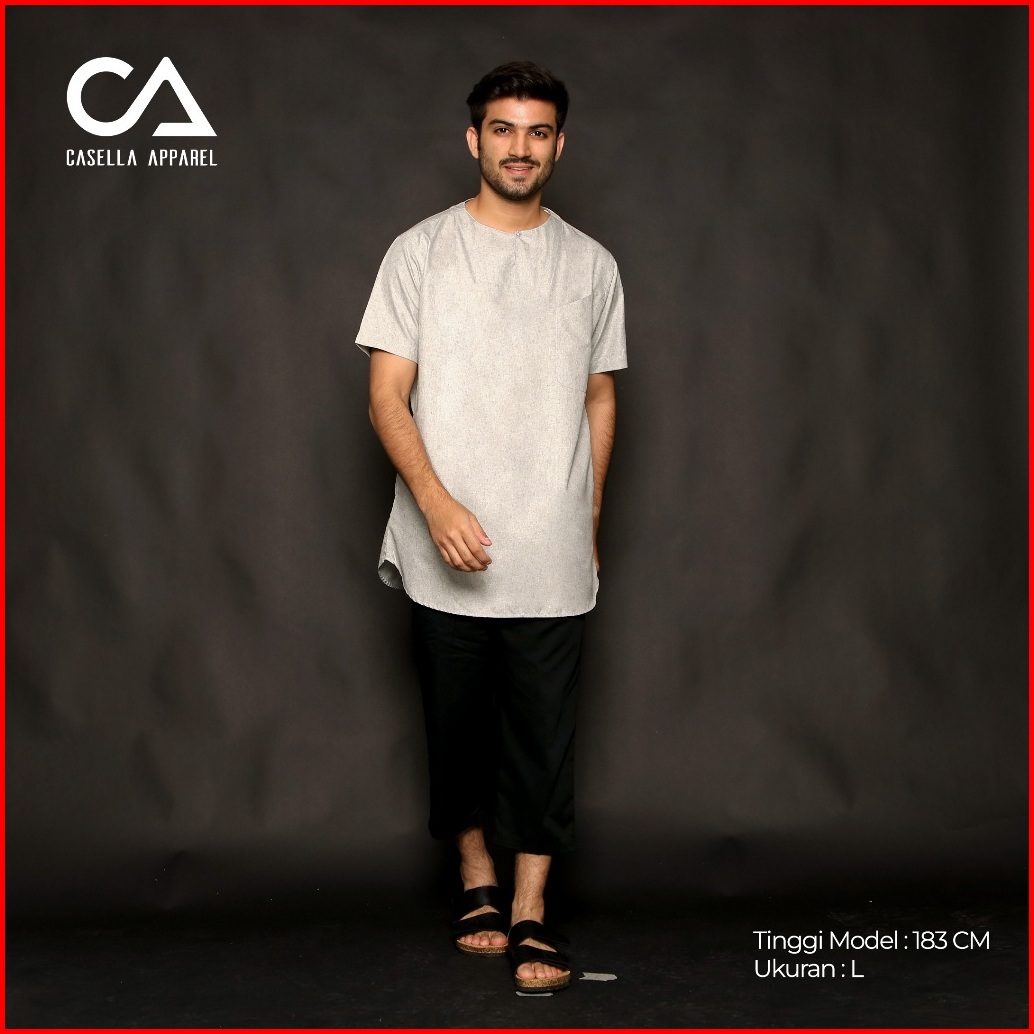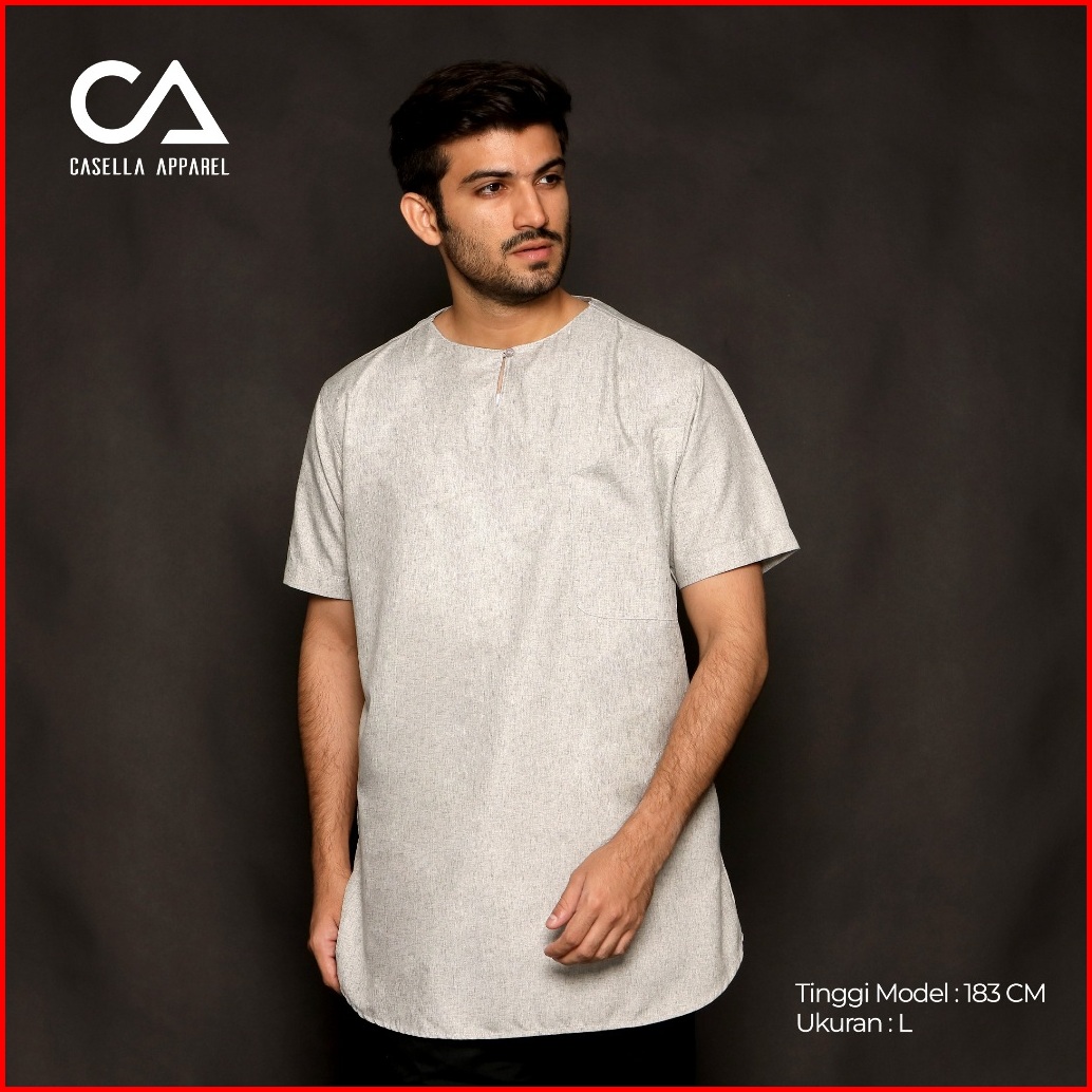 Casella Baju Koko Kurta Pria Lengan Pendek Two Tone Muslim Daily Wear Umar 3002 Misty