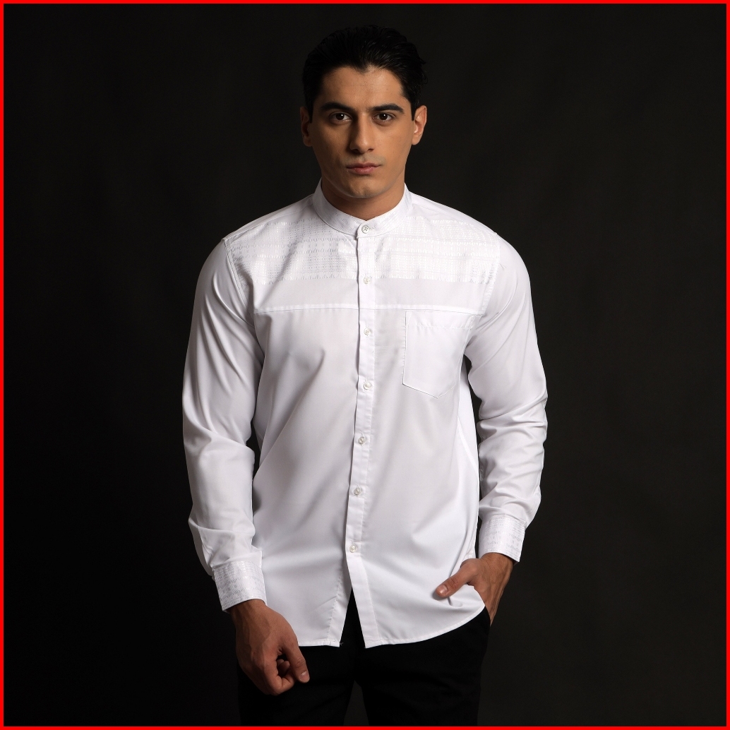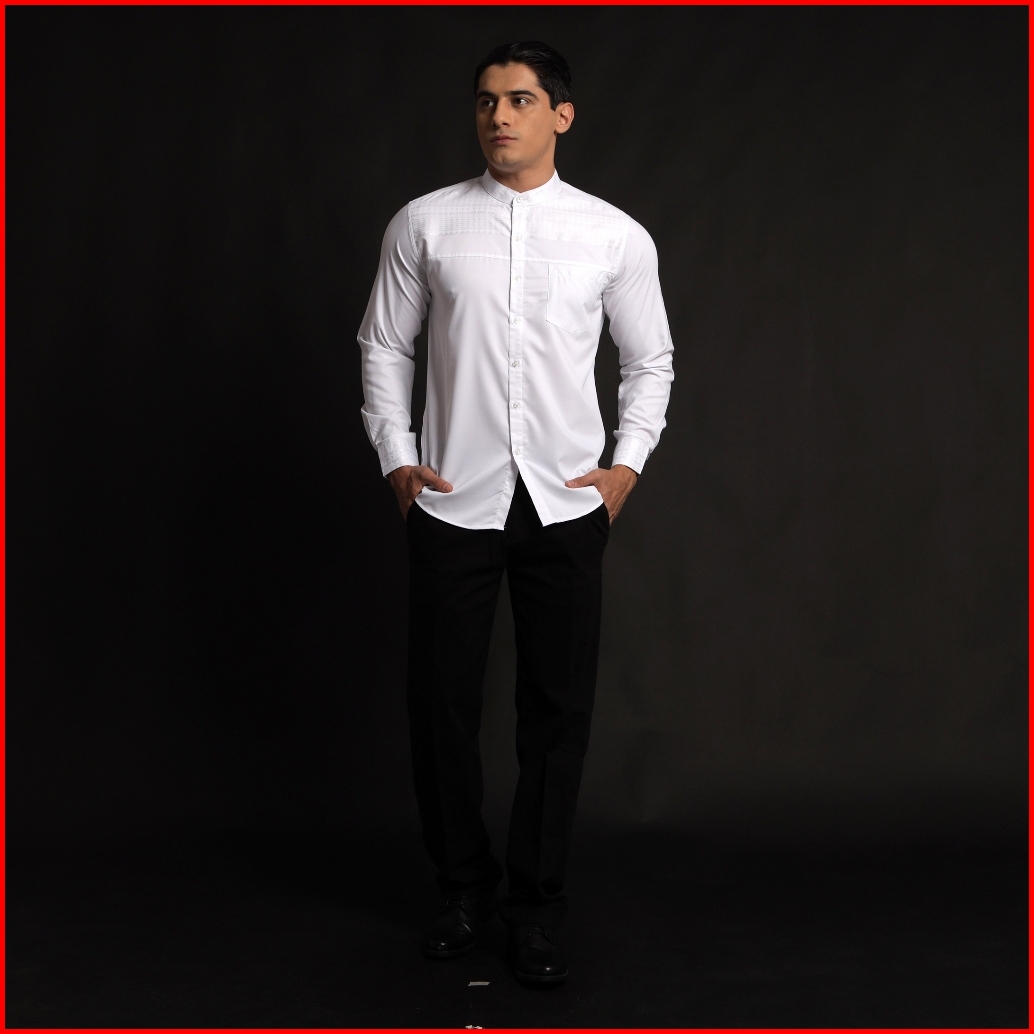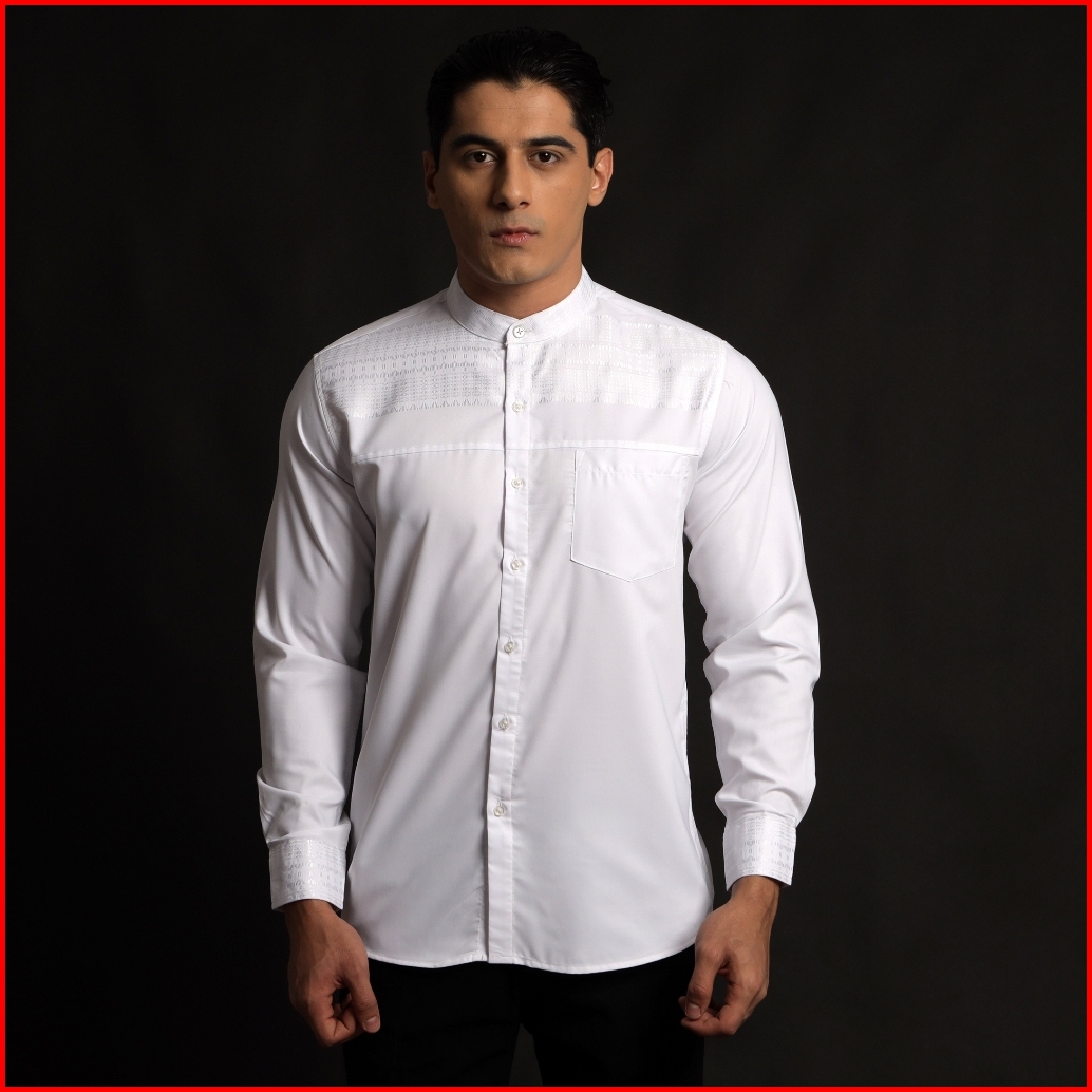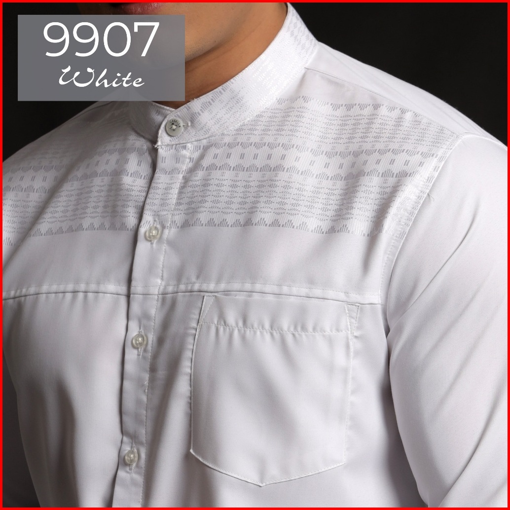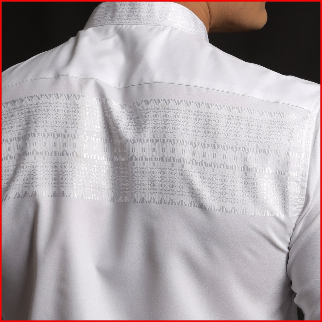Casella Baju Koko Pria Lengan Panjang Horizontal White Koko Elegant Ismail Lengan Panjang 9907 White