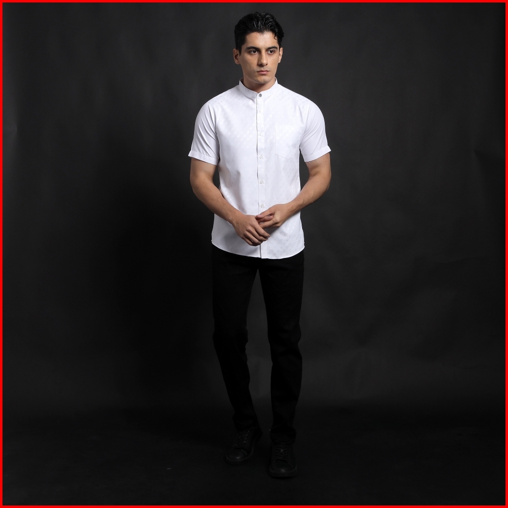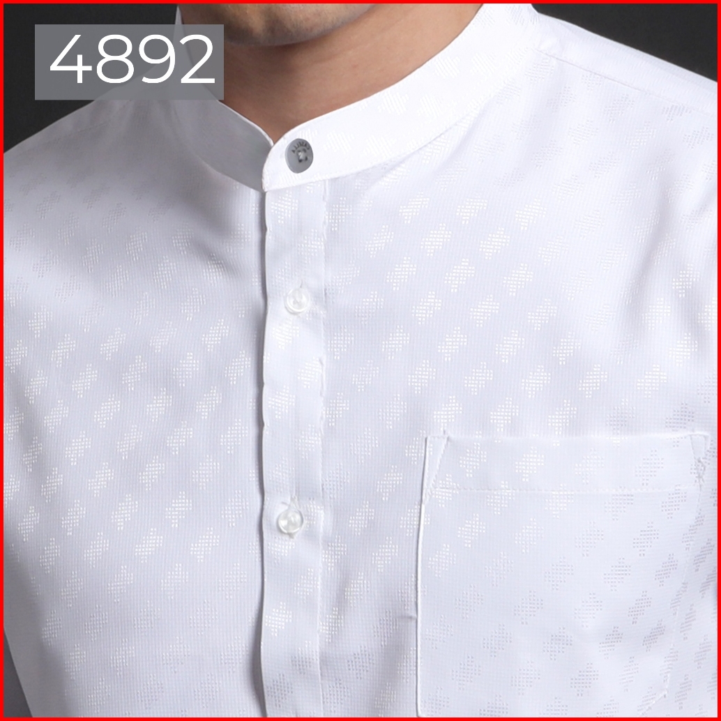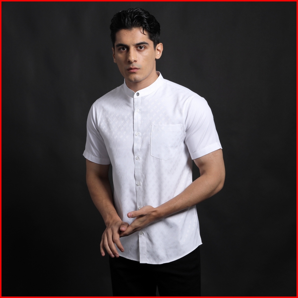 Casella Baju Koko Pria Lengan Pendek Putih Motif Elegan Baju Koko Putih Yusuf 4892 White