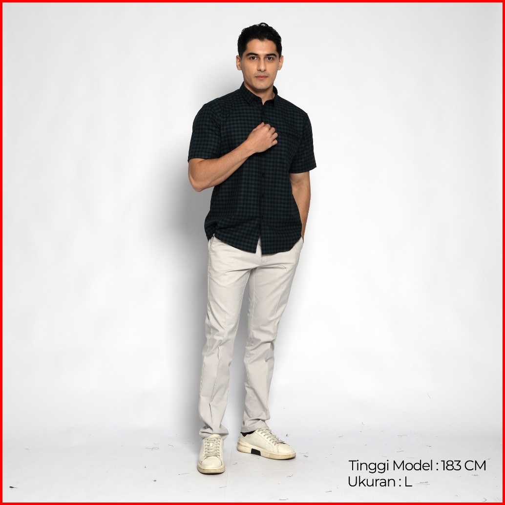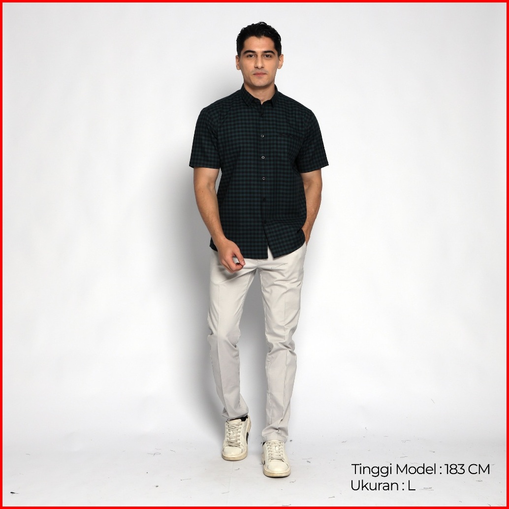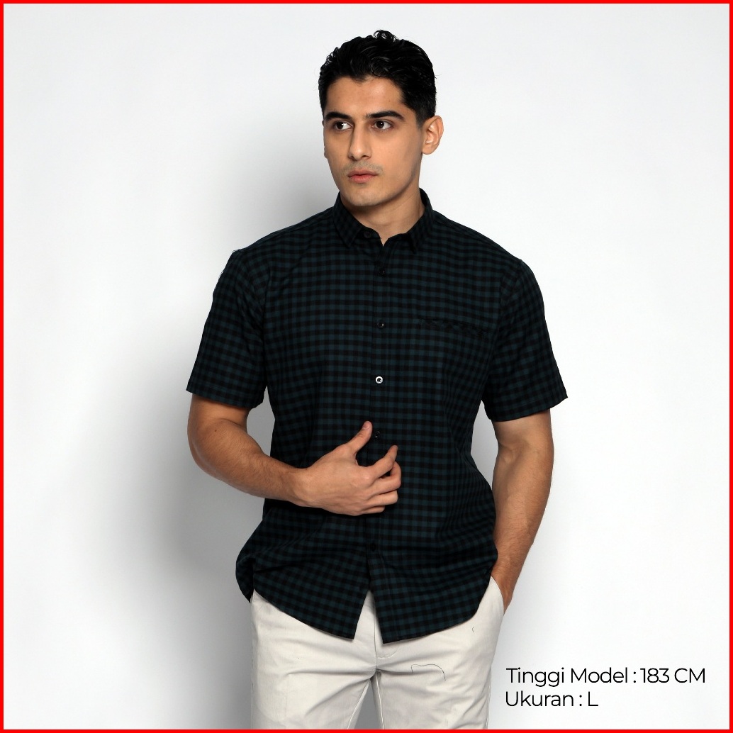 Simple Perfect Kemeja Chicago Pria Lengan Pendek Exclusive Motif Kotak 2315 Green