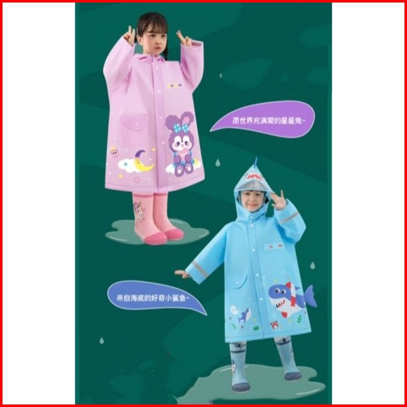Jas Hujan Anak Perempuan Model Ransel 3-13 Tahun - Mantel Ujan Tas Karakter Motif Lucu