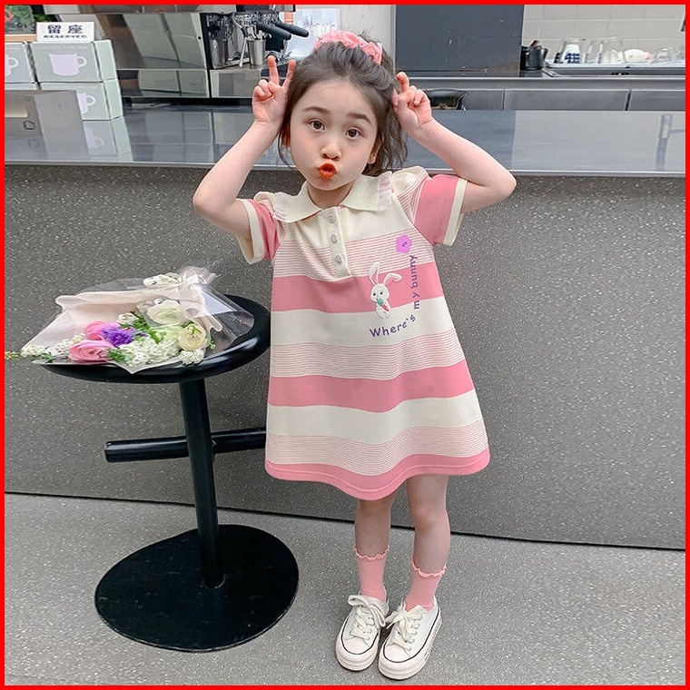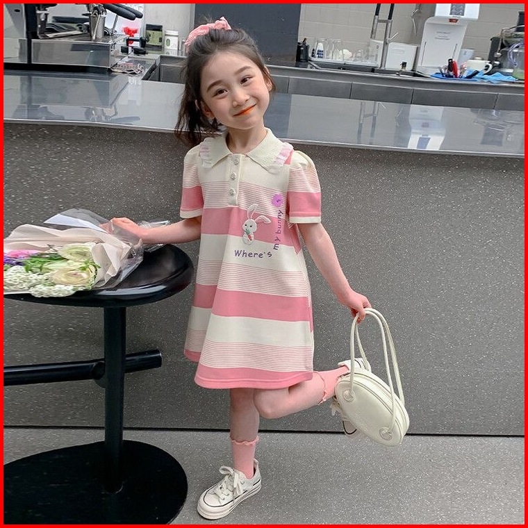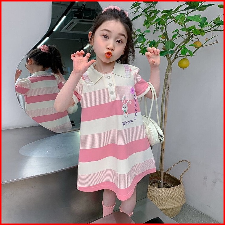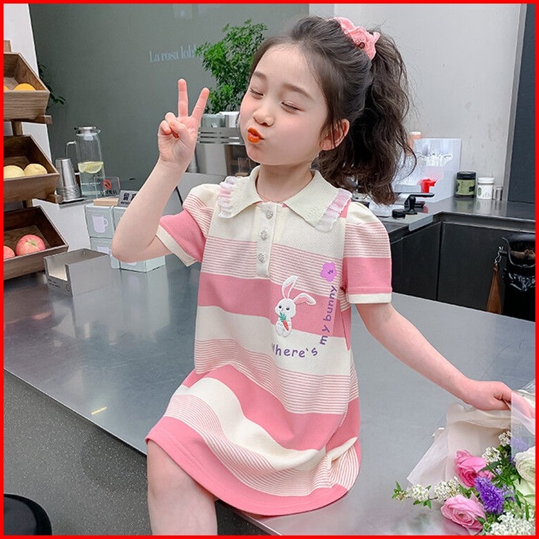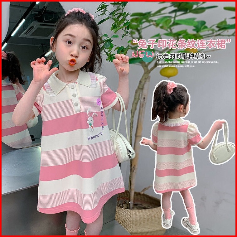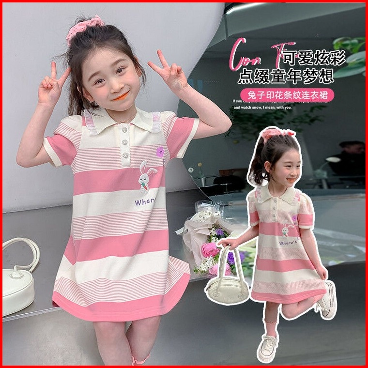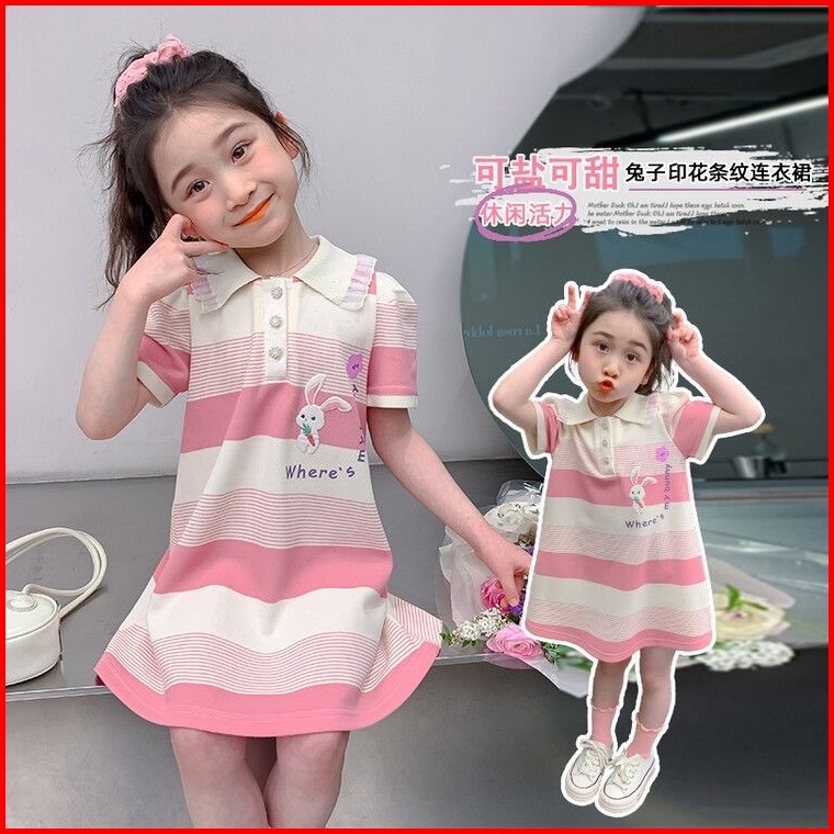 Princess Kesli 2-11 Tahun Rabbit Dress Kartun Gaya Cartoon Korea Salur Gaun Baju Anak Perempuan