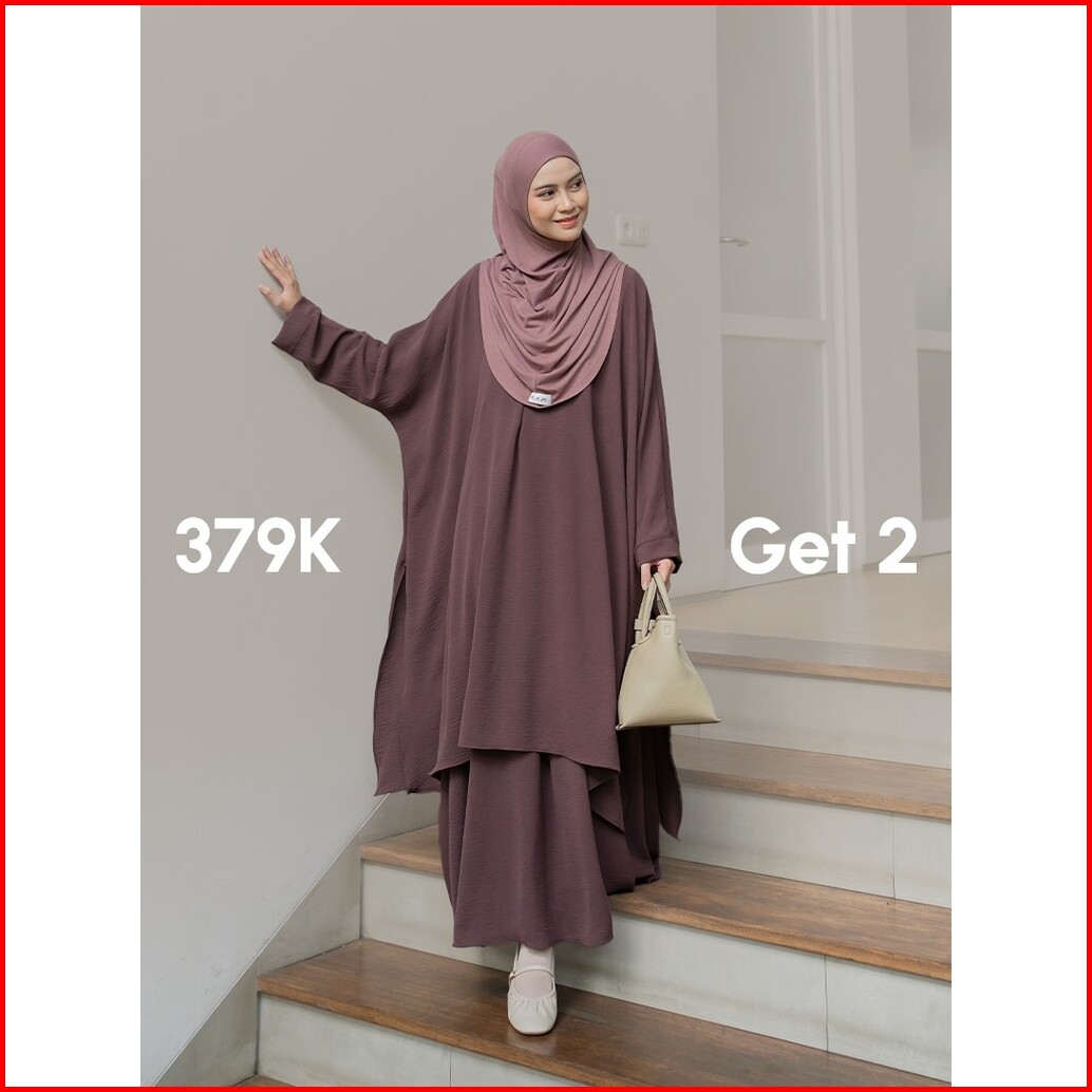 Aere - Duha Series Crinkle - Set Only Set Pashmina Set Hijab - Set Tunik Rok Hijab Umroh Haji Bahan Premium Crinkle Airf