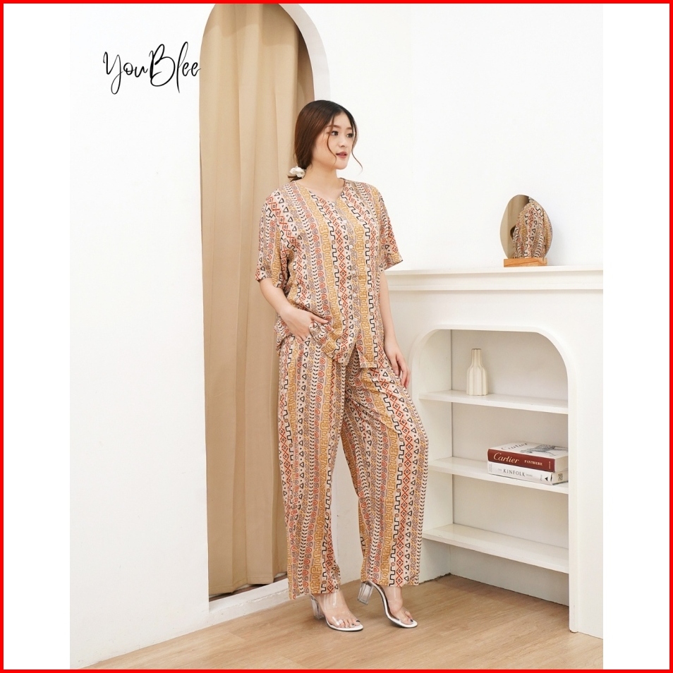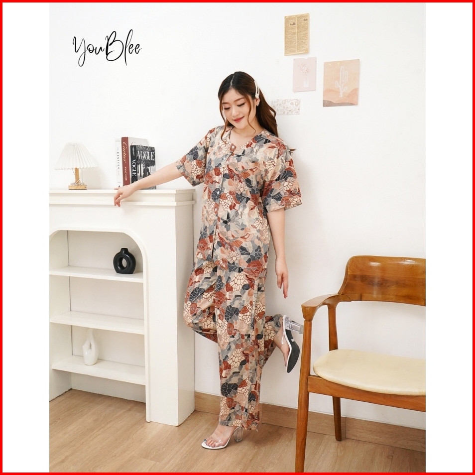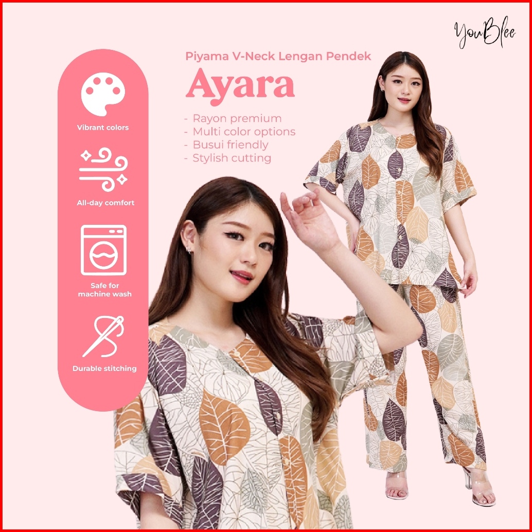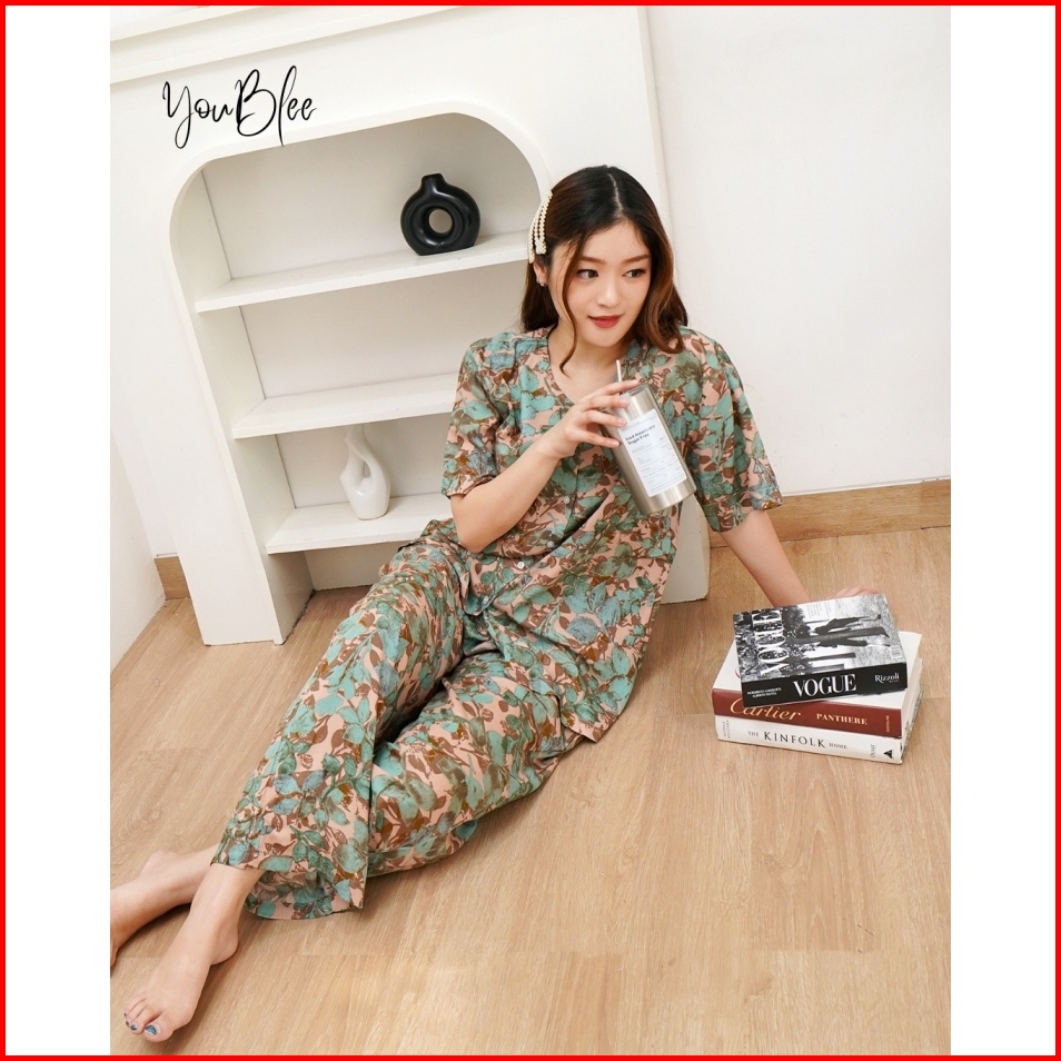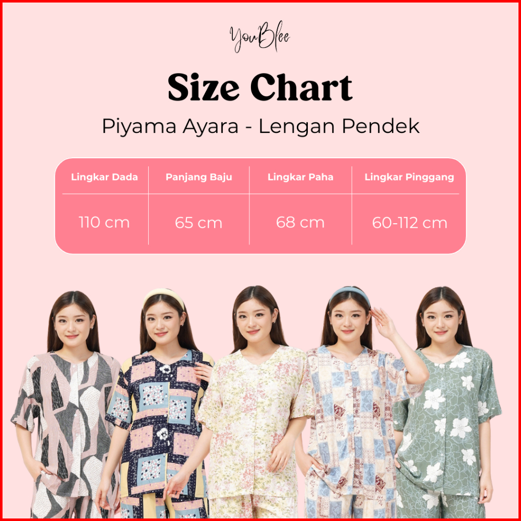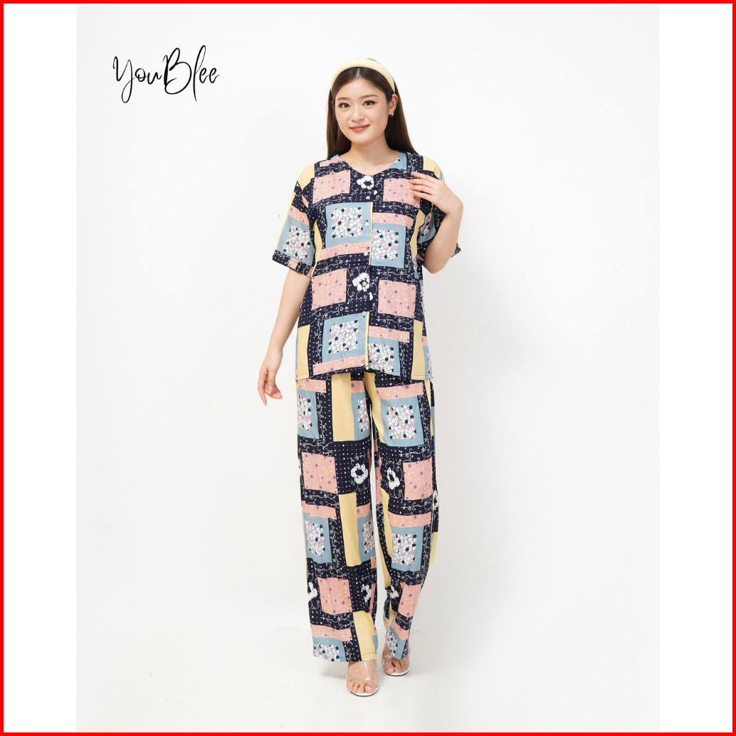 Youblee Piyama Ayara Baju Tidur Ld 110 Wanita Lengan Pendek Kerah V One Set Rayon Premium