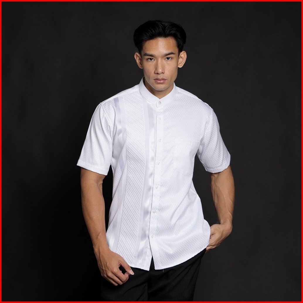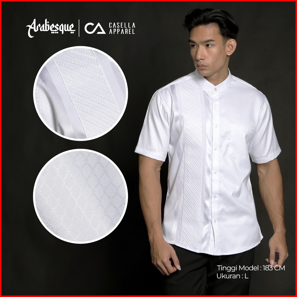 Casella Baju Koko Pria Lengan Pendek Arabesque White Design Baju Koko Putih Lengan Pendek 4057 White