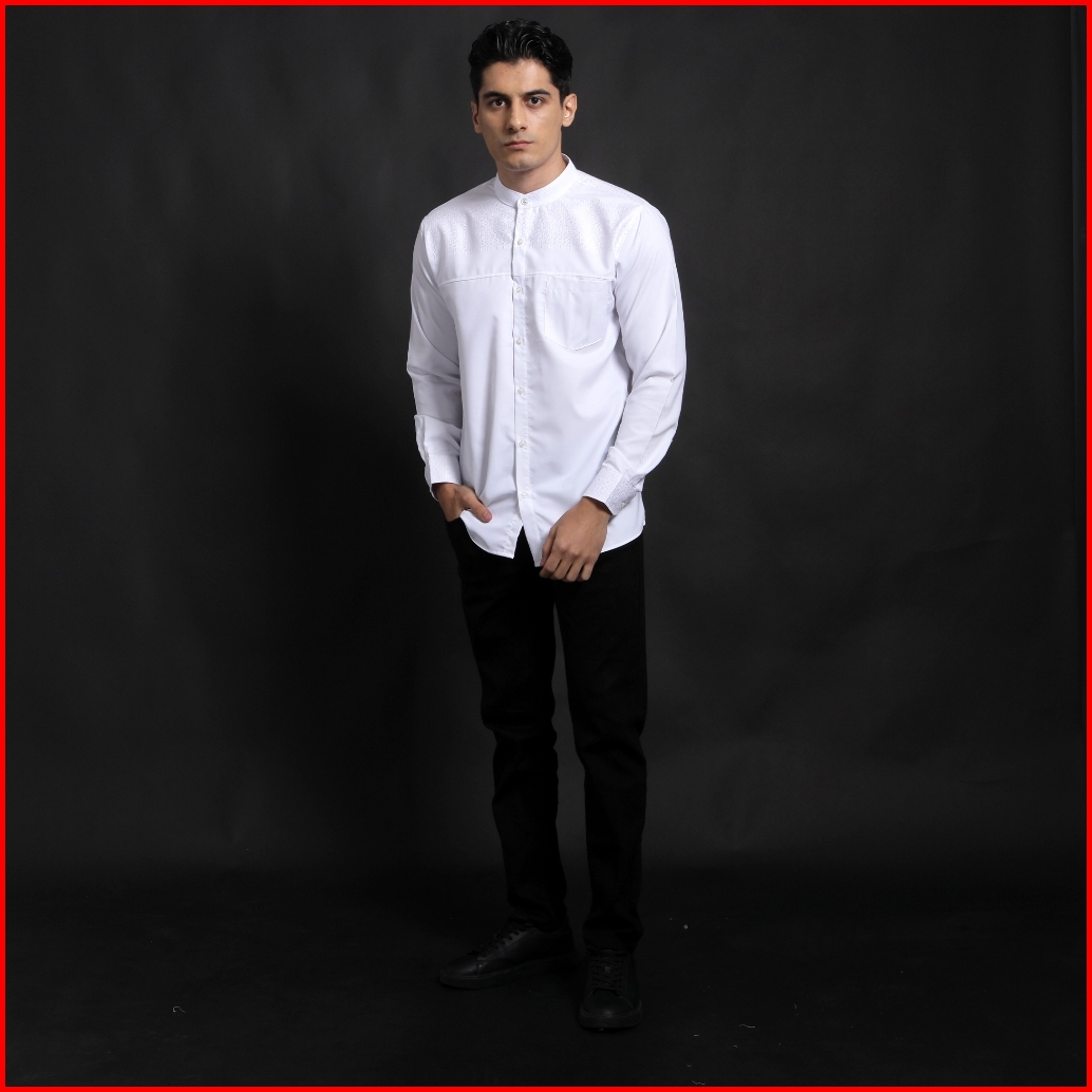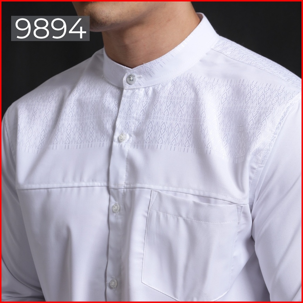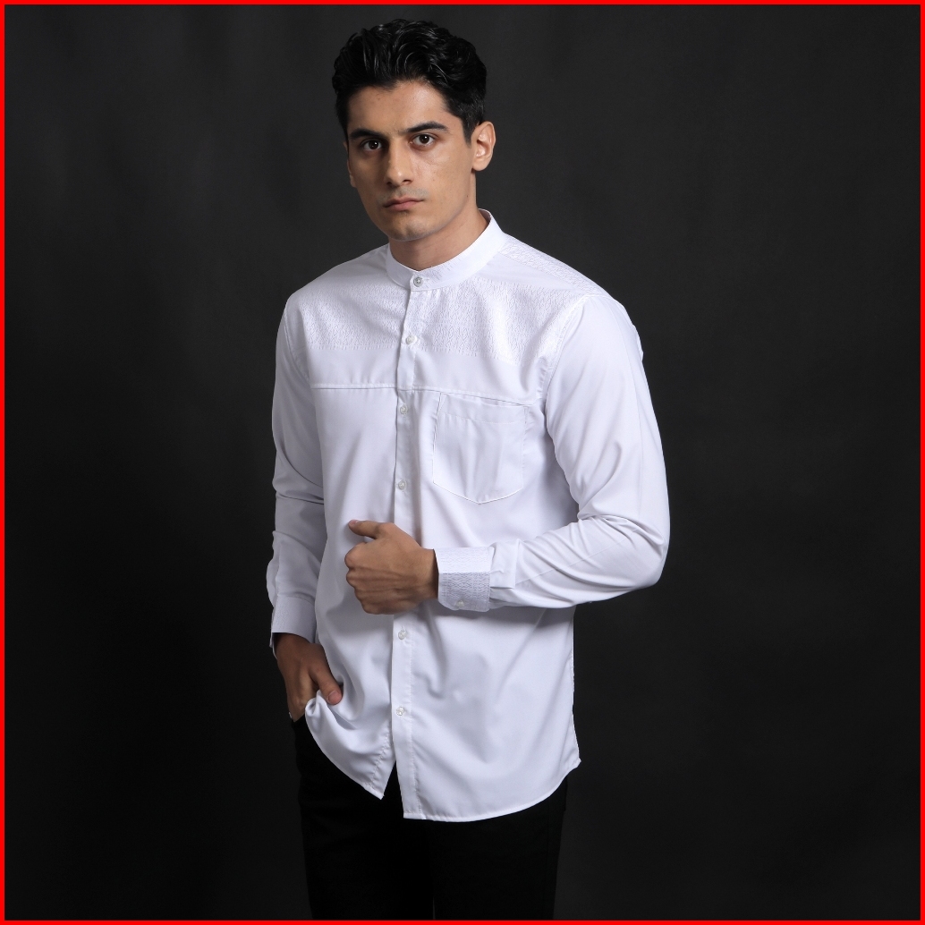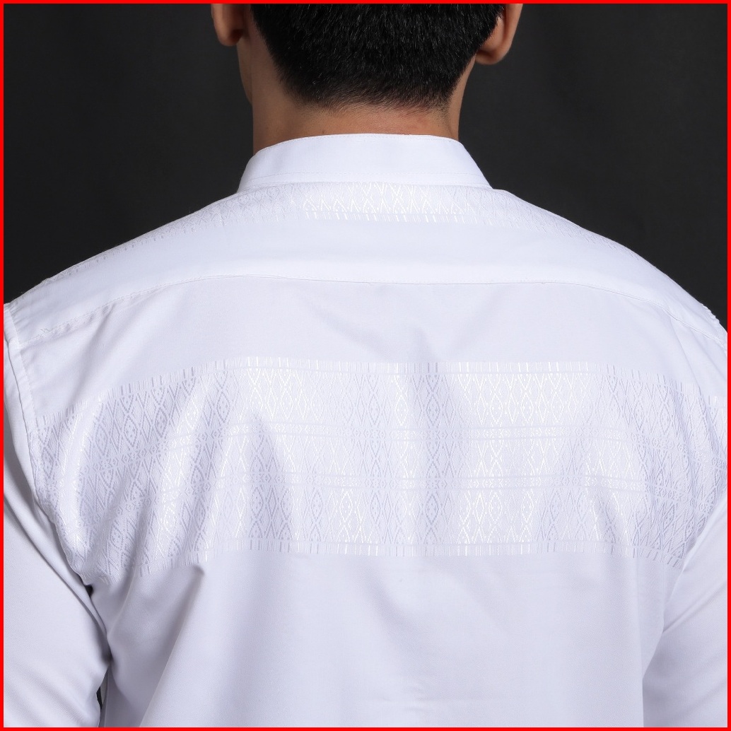 Casella Baju Koko Pria Lengan Panjang Premium Horizontal White Koko Elegant Ismail Lengan Panjang 9894 White