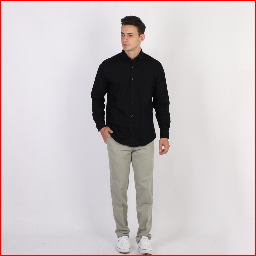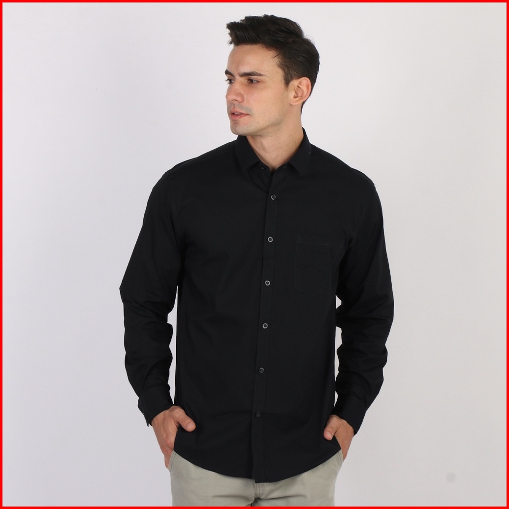 Simple Perfect Kemeja Pria Lengan Panjang Hitam Polos Solid Basic Gallant Shirt 7714 Black