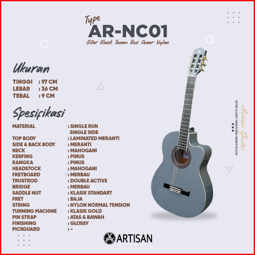 Artisan Gitar Klasik Tanam Besi Ar - Nc01 Senar Nylon Guitar