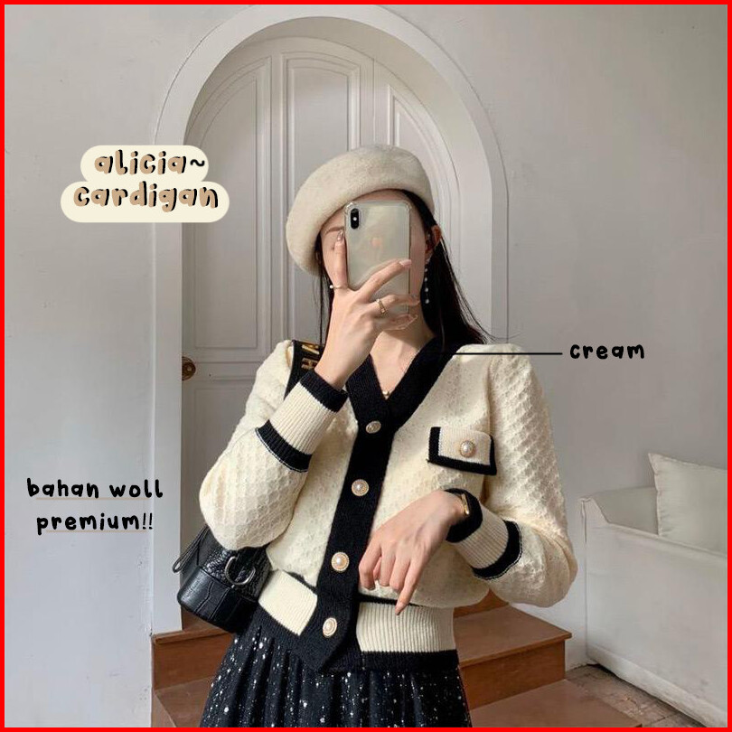 Ios Shop Alicia Blouse Woll Kasual Kantor Wanita Korean Style Ootd