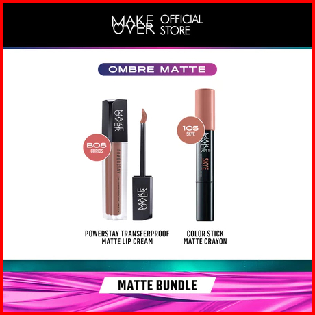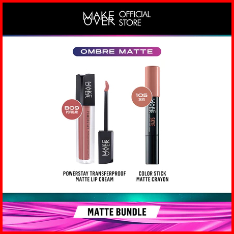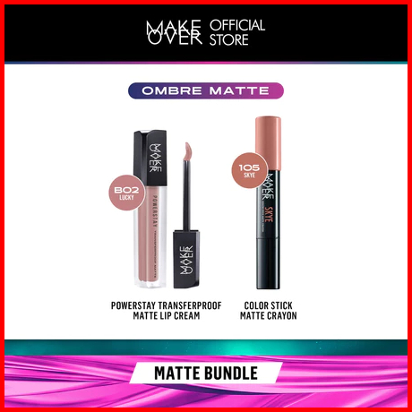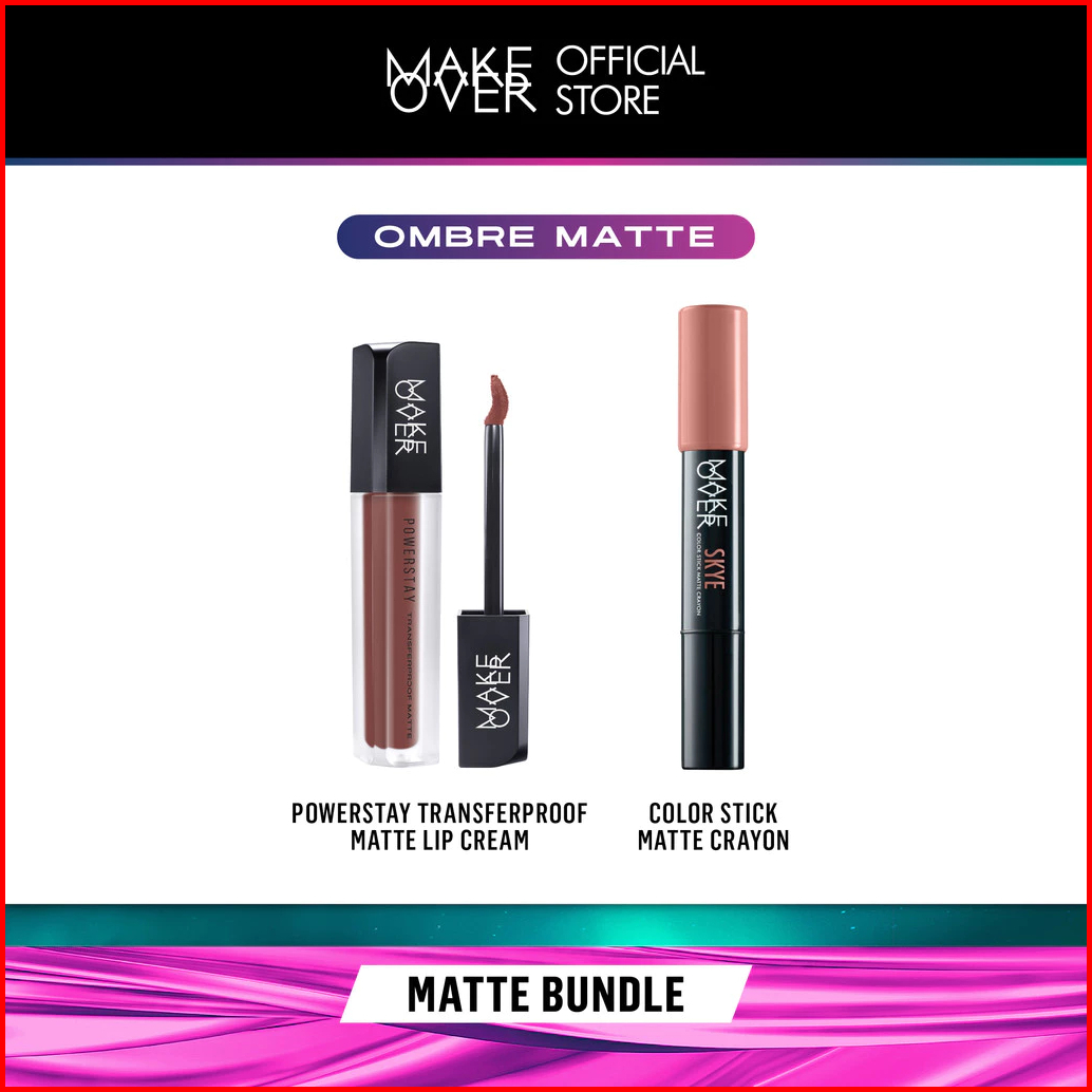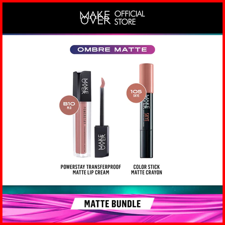 Make Over-100 Ori Glam Lip Statement Matte Bundle - Transferproof Matte Lip Cream Bundle Color Stick Matte Crayon - Pake