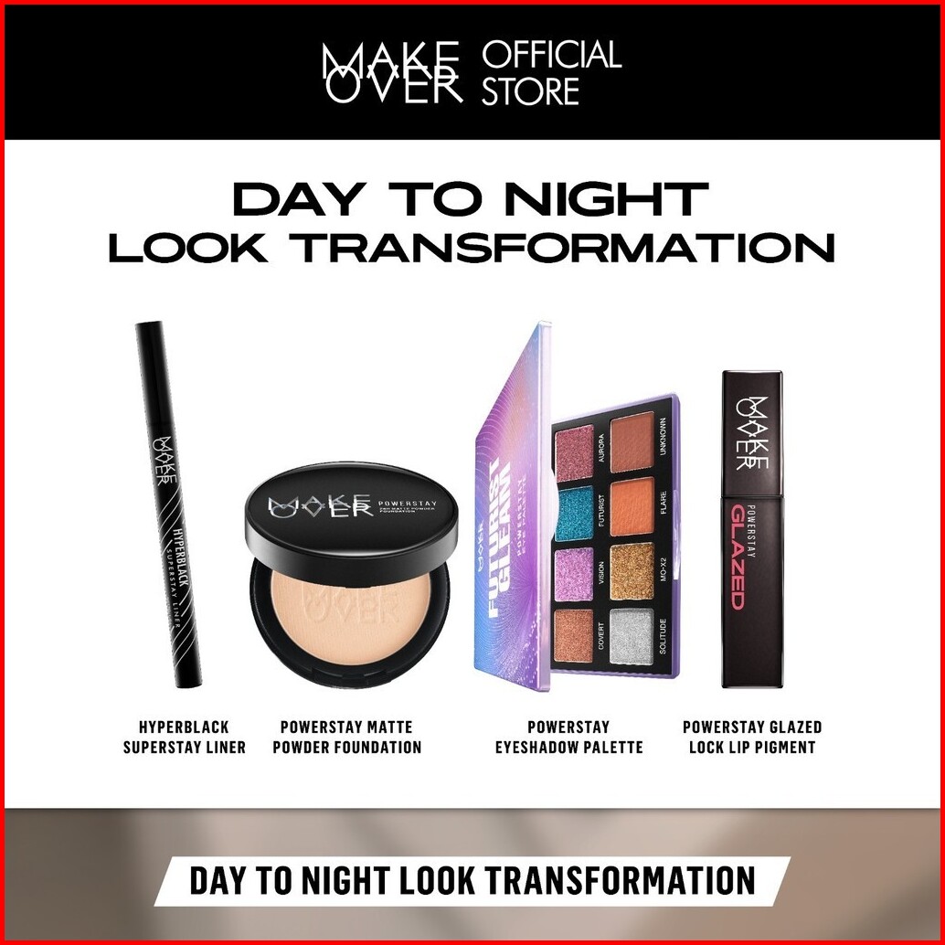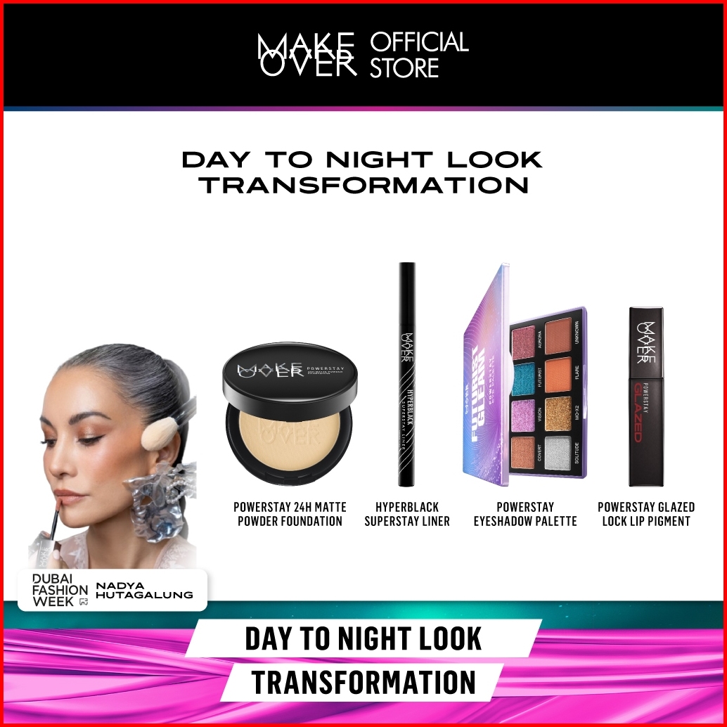 Dubai Fashion Wek Make Over Day To Night Look Transformation Powder Foundation Eye Palette Hyperblack Glazed - Bundle Be