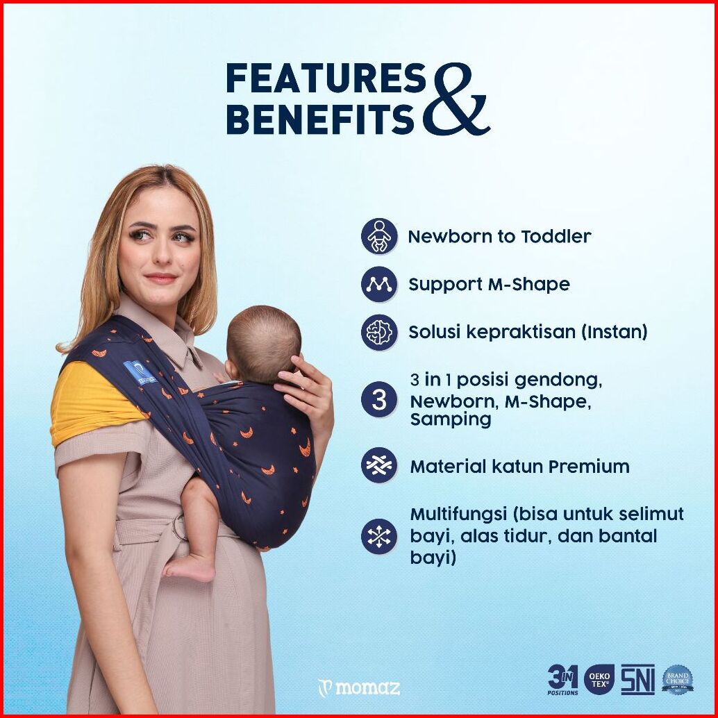 Momaz Gendongan Bayi Newborn - Gendongan Bayi Samping - Gendongan Bayi M Shape - Gendongan Bayi