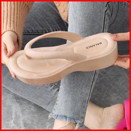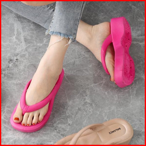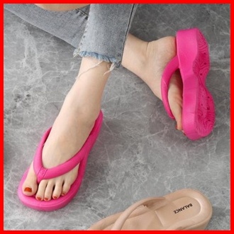 Sandal Jepit Wanita Karet Import Balance Motif Polos Sol Tebal 5cm 7001-a6