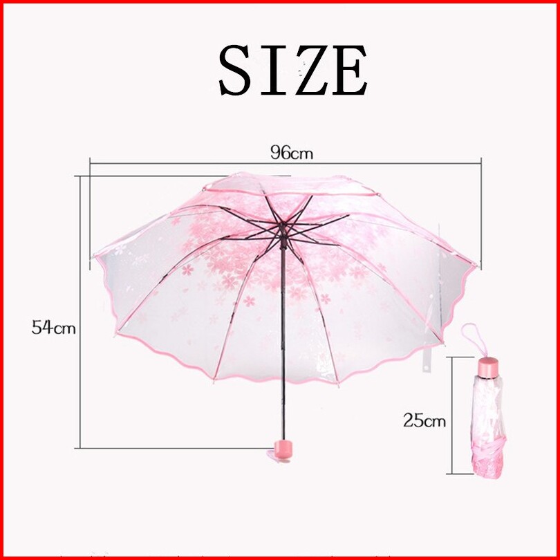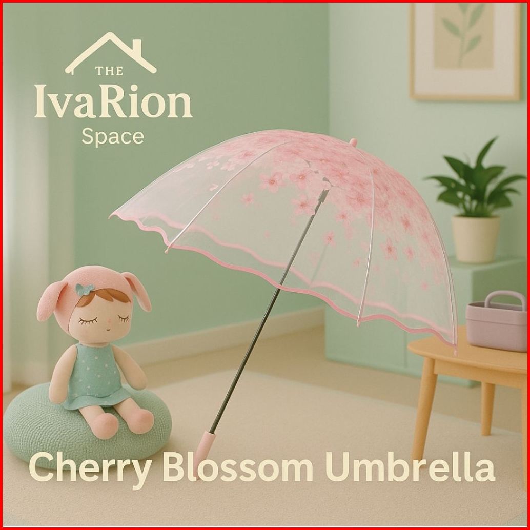 Payung Lipat Jepang Motif Transparan Cherry Blossom - E023