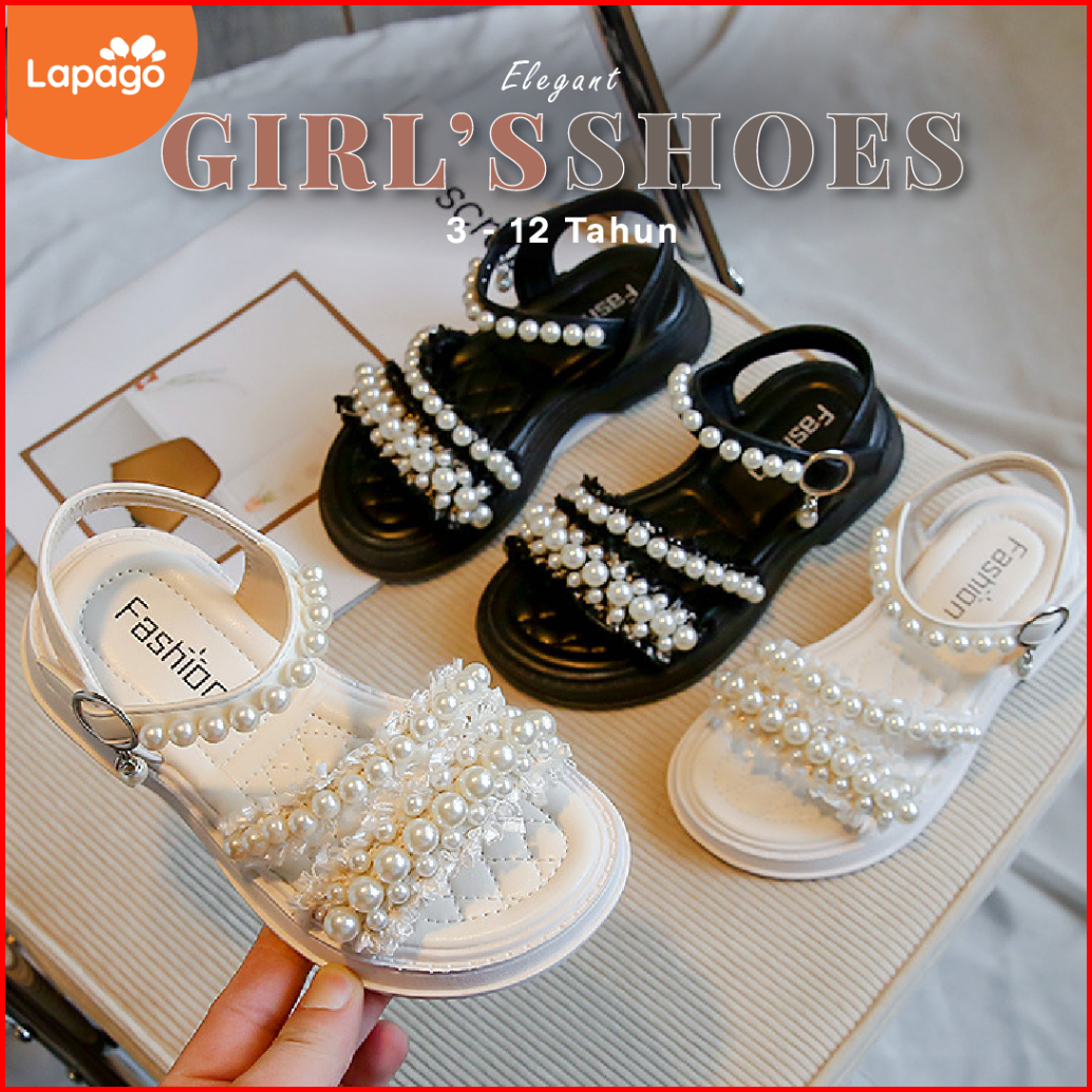 Lapago Free Box Sandal Slip On Anak Perempuan Elegan Mutiara Pesta Umur 3-12 Thn Type Mix