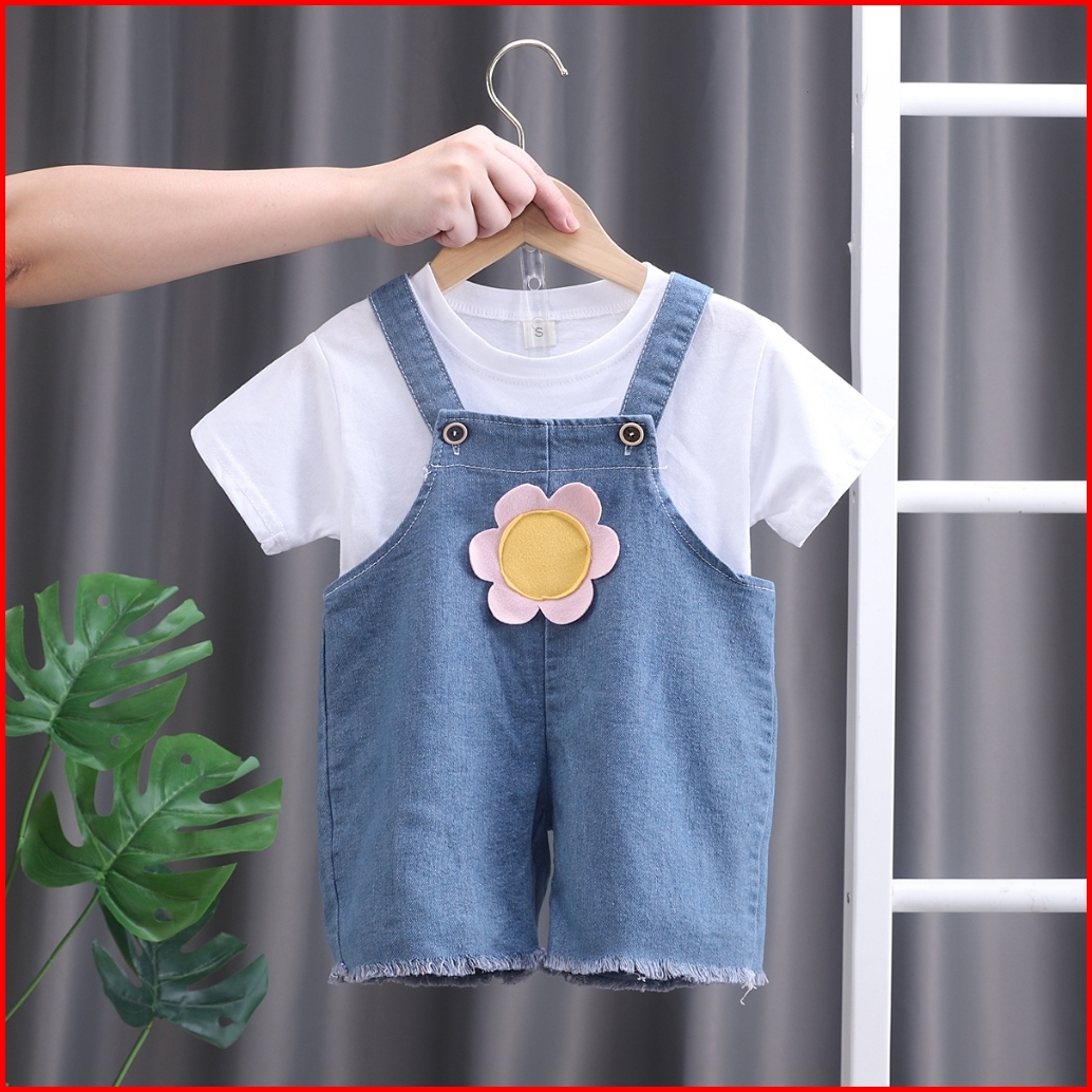 Setelan Baju Kodok Anak Pendek Anak Perempuan Motif Flower Terbaru 1-4 Tahun