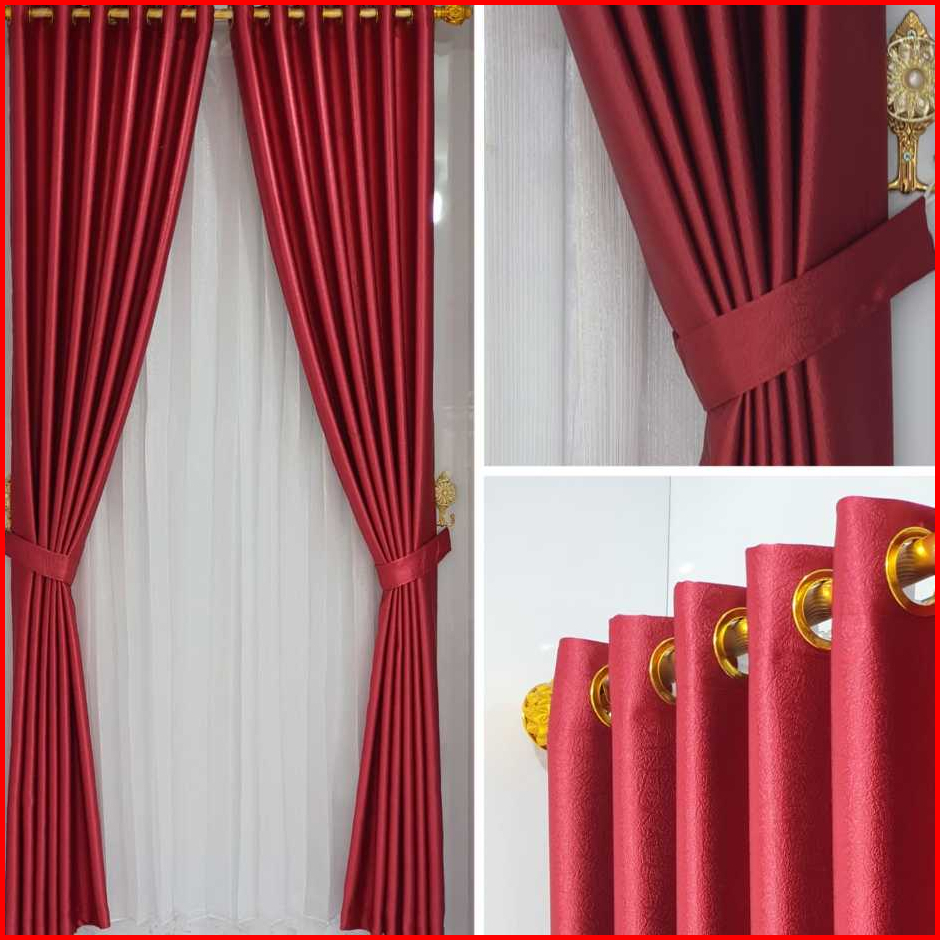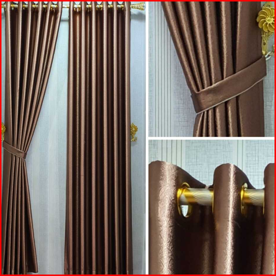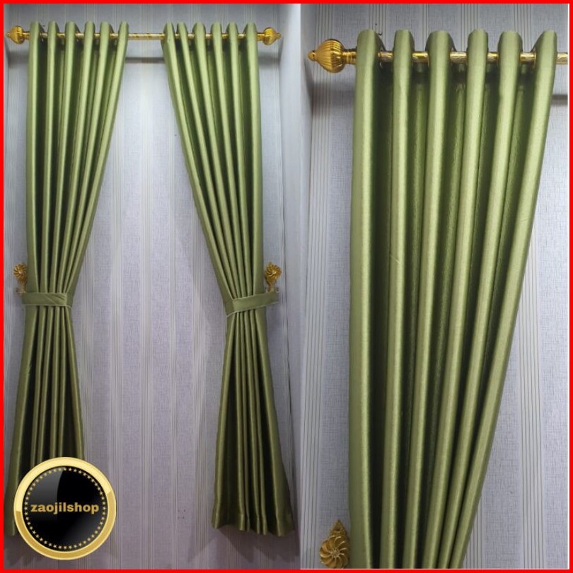 Gorden Jendela Pintu Kamar Blackout Polos Embos Hijau -abu -silver -moca-coklat Panjang Pendek
