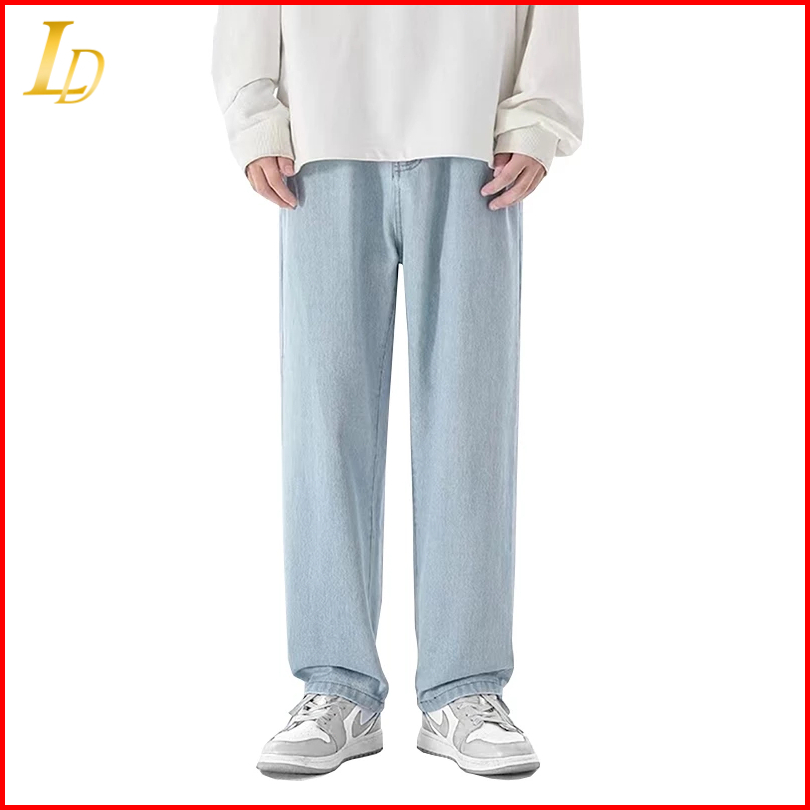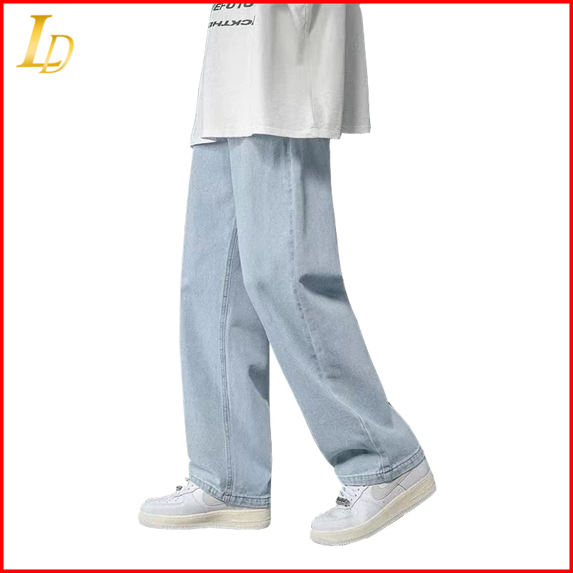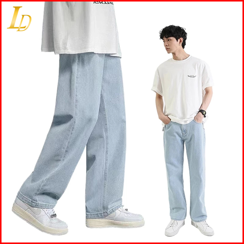 Celana Panjang Jeans Pria Celana Jeans Cowok Celana Panjang Jeans Standar Celana Jeans Kulot Biru Muda