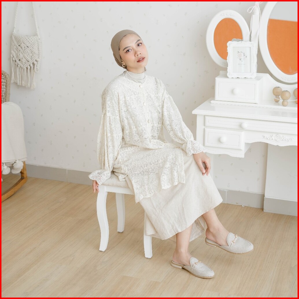 Dianable - Daiva Rustic Mules Wanita Cream Synthetic Leather