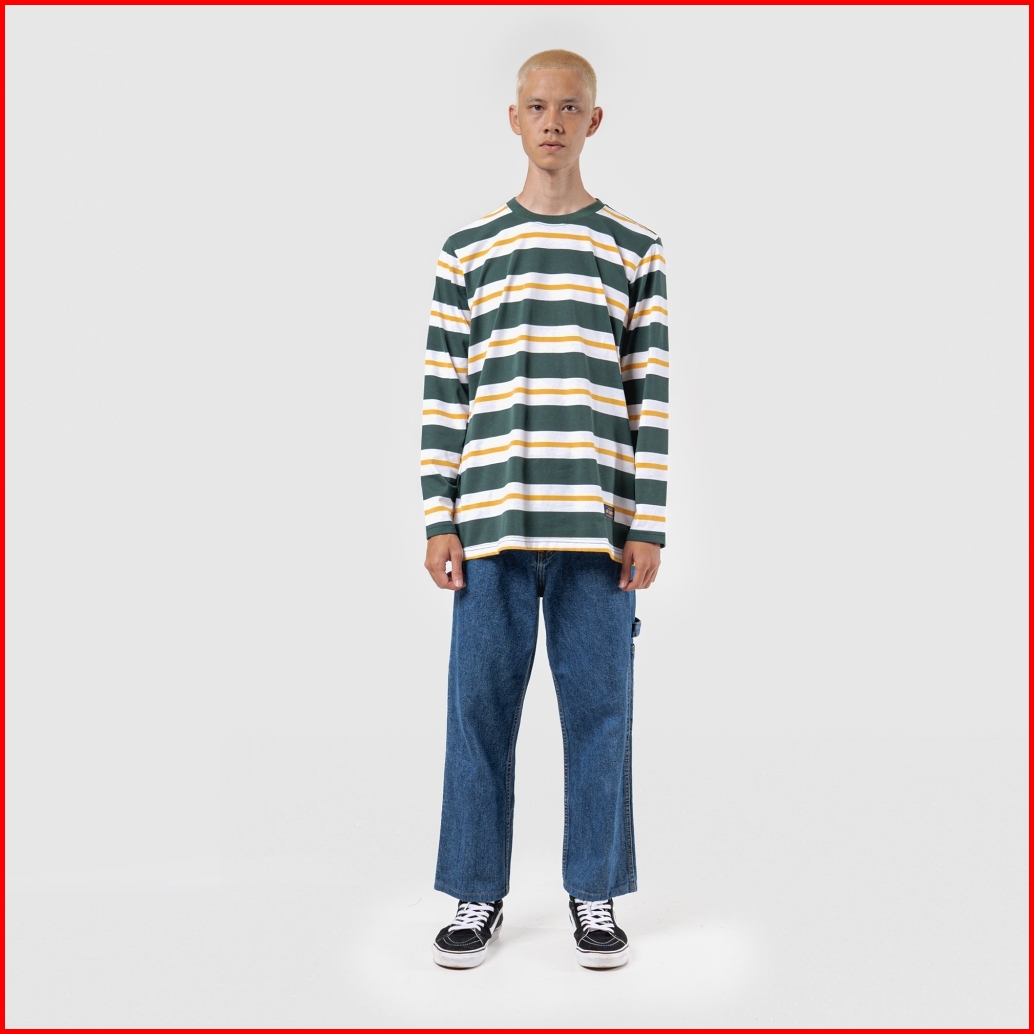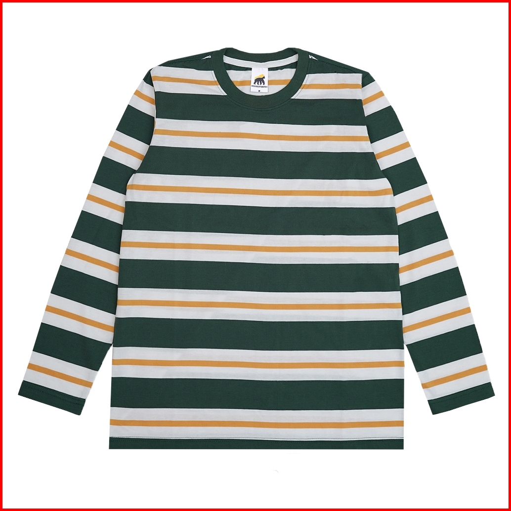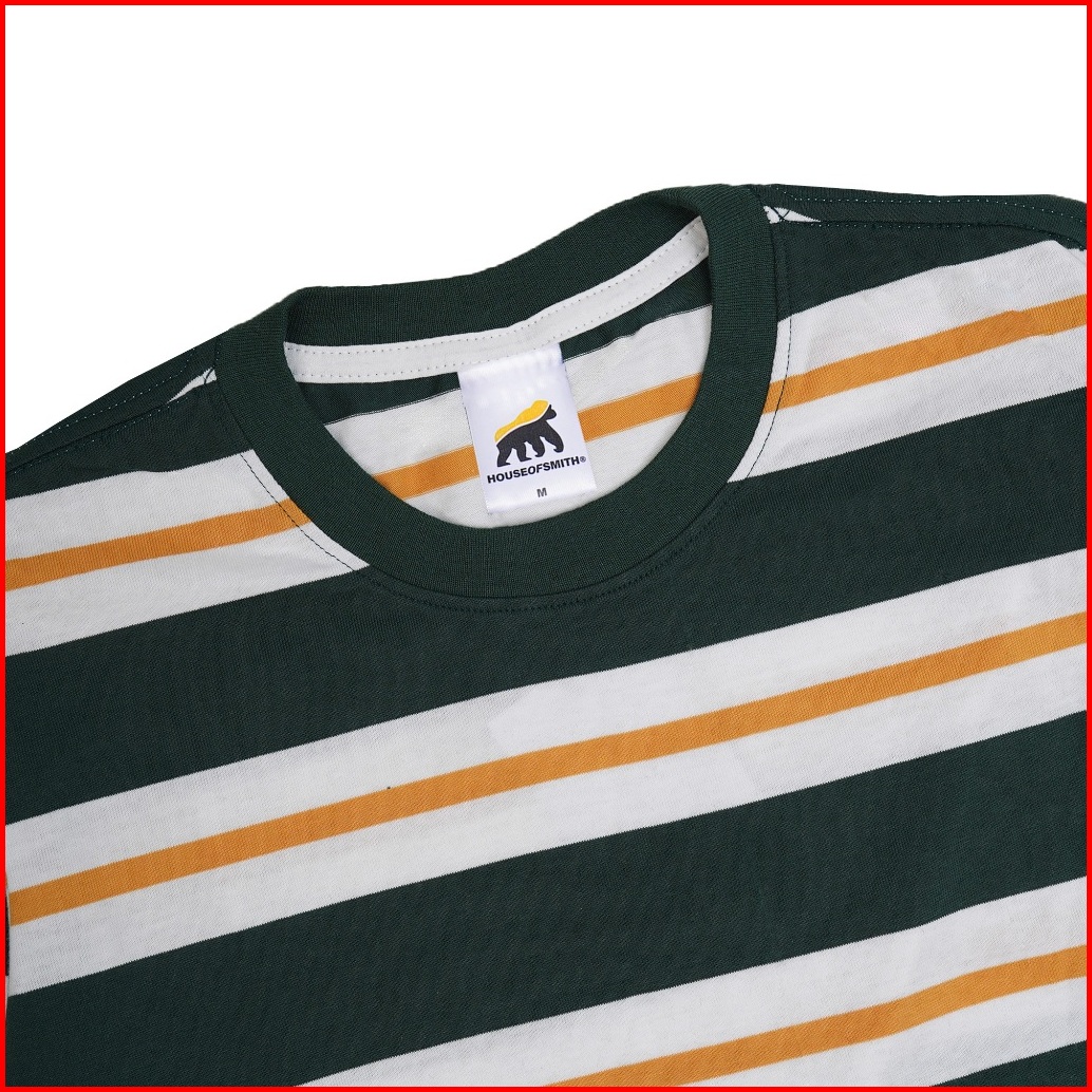 House Of Smith Kaos Pria Lengan Panjang - Basic Ls Stripe Green White Yellow 2 - T Shirt Long Sleeve