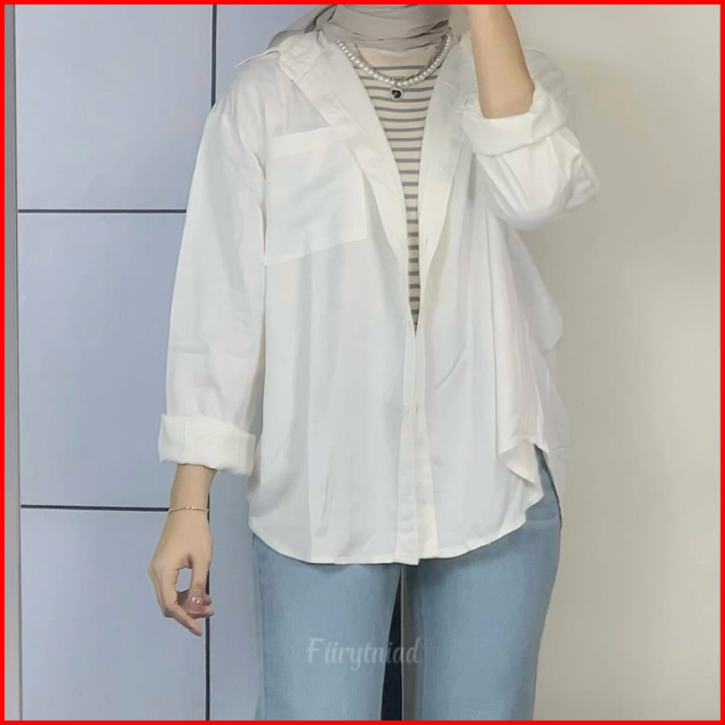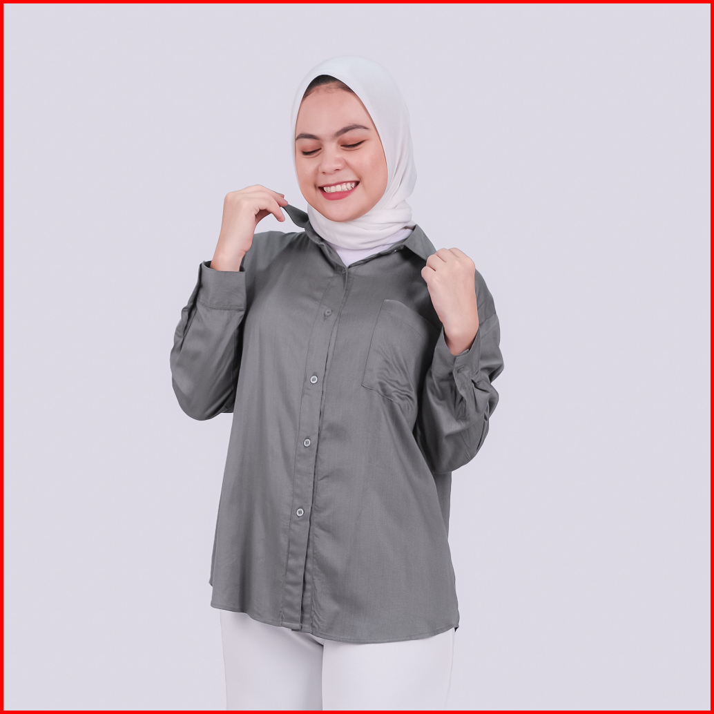 Clotiva - Kemeja Basic Rayon Outfit Kampus Santai