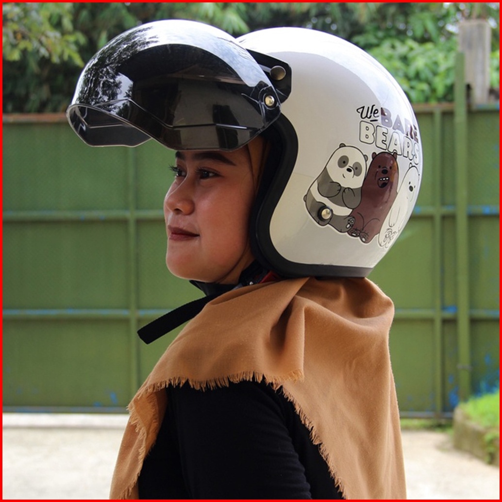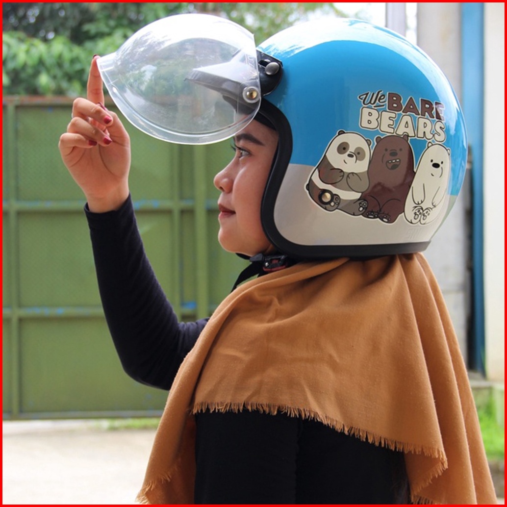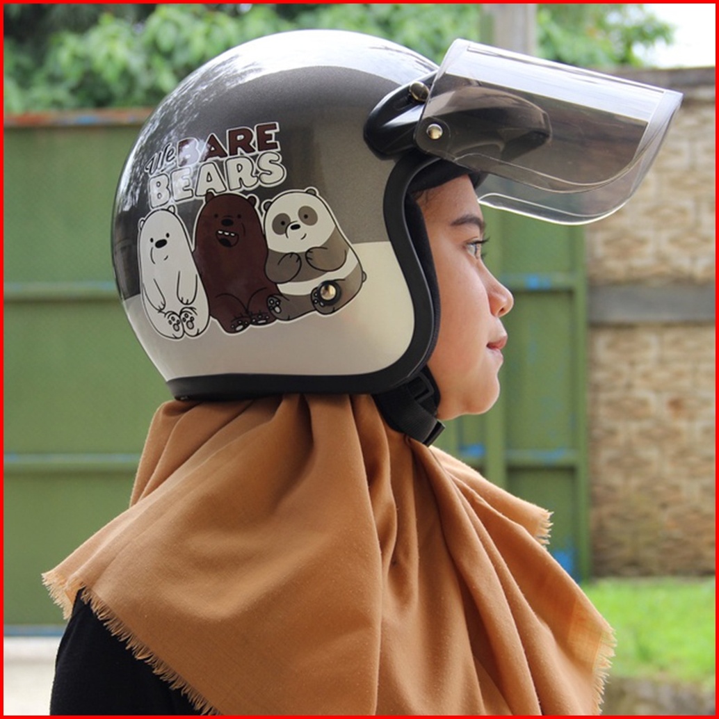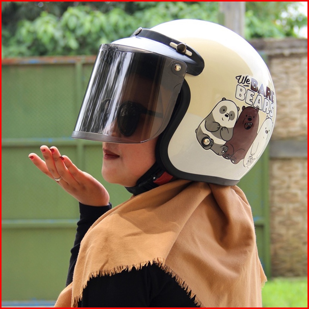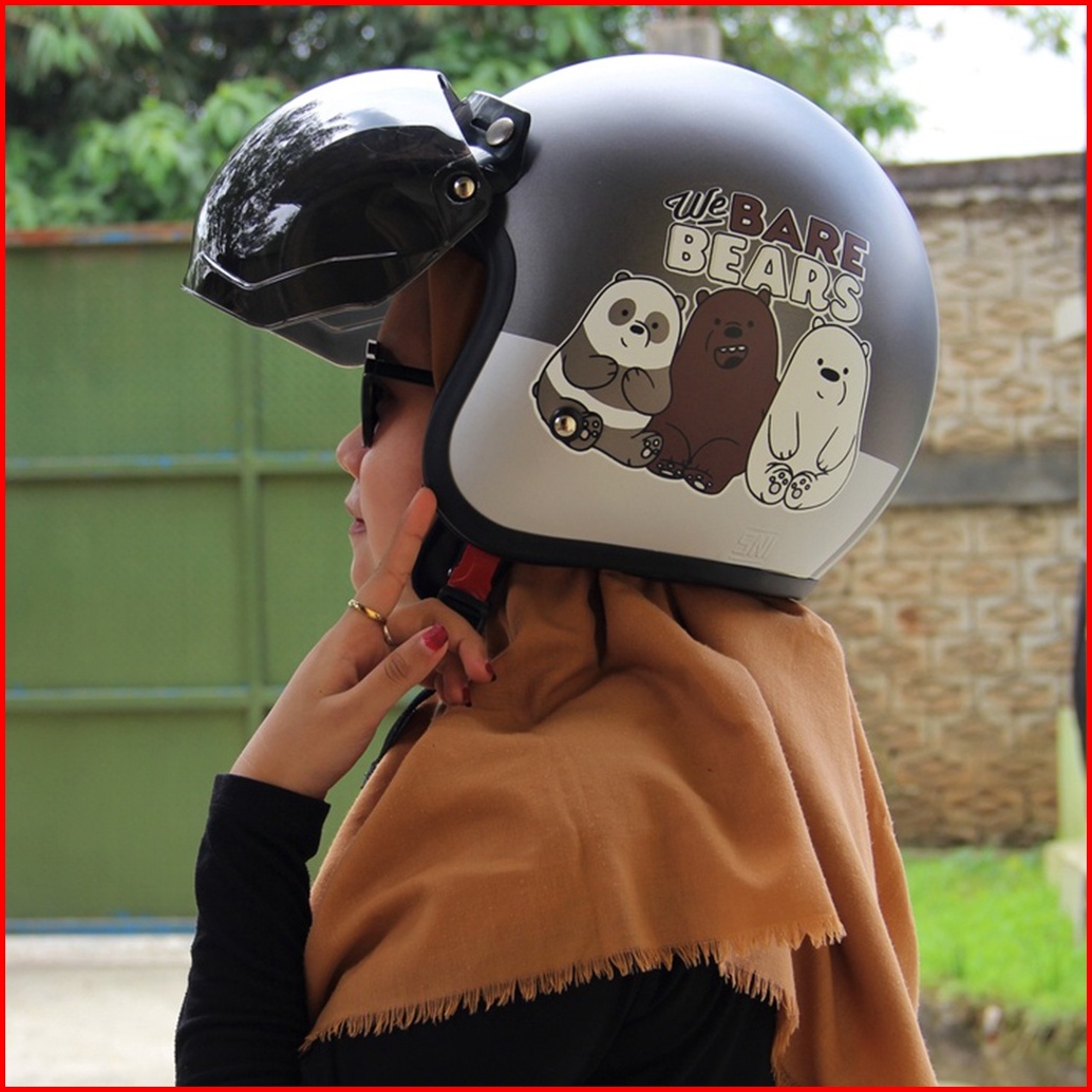 Helm Bogo Retro Motif The Bear Bears Helm Pria Dan Wanita Dewasa Sni Helm Murah Premium