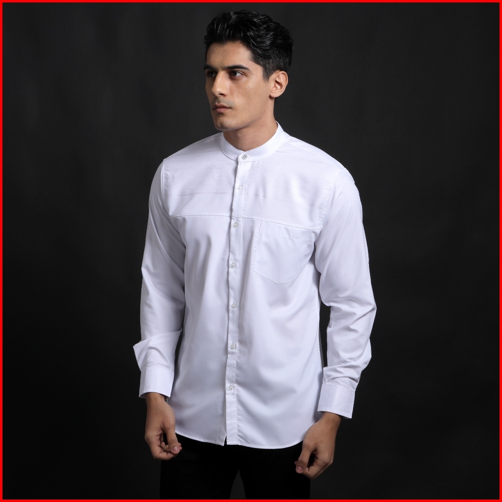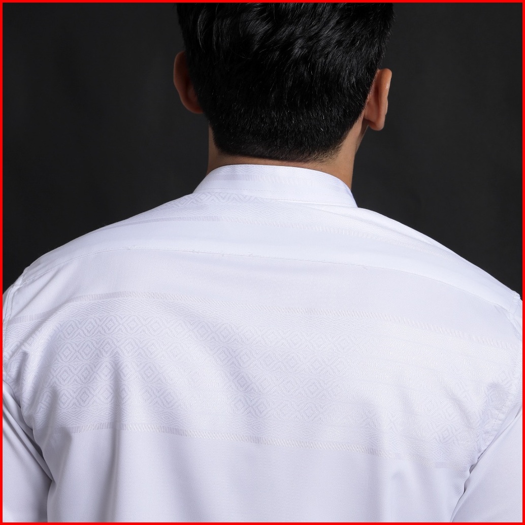 Casella Baju Koko Pria Lengan Panjang Premium Horizontal White Koko Elegant Ismail Lengan Panjang 9893 White