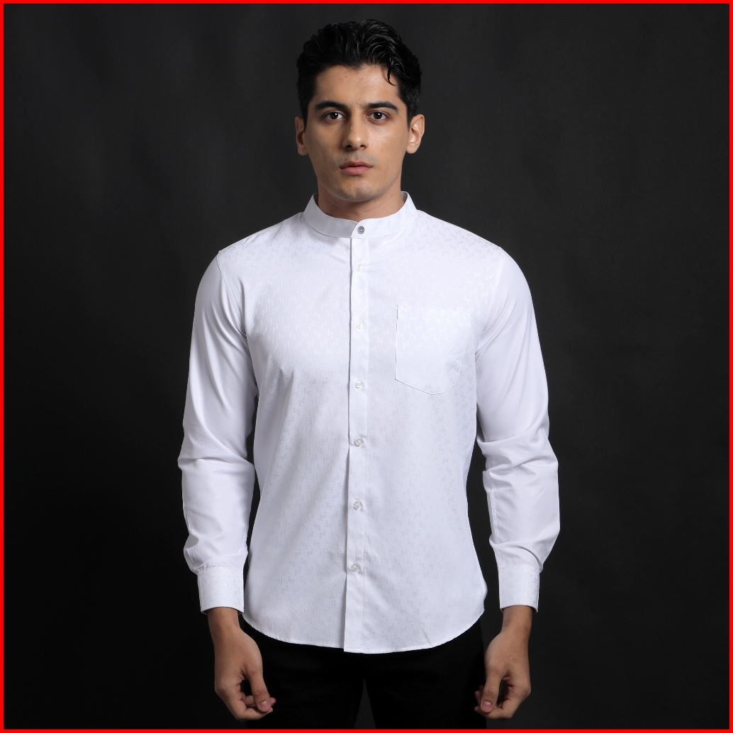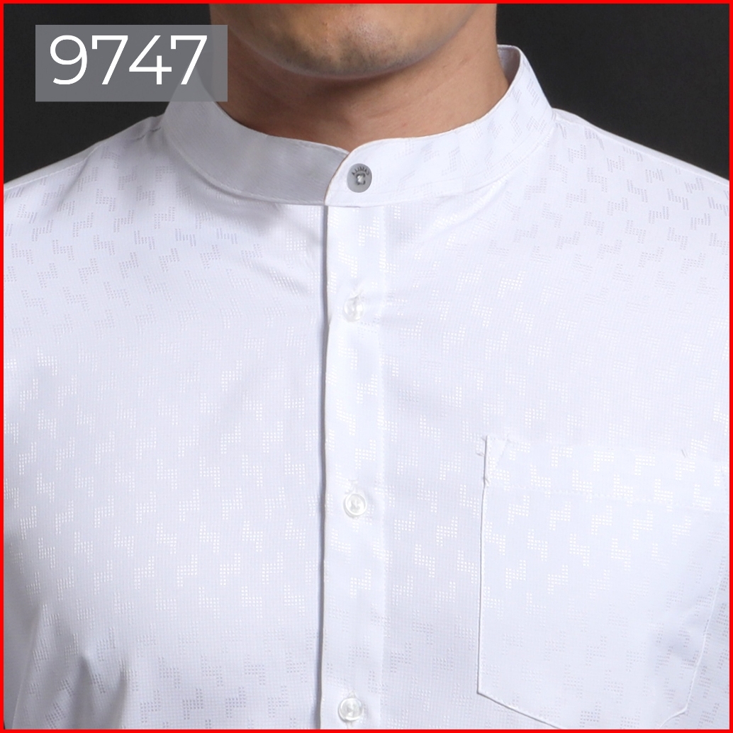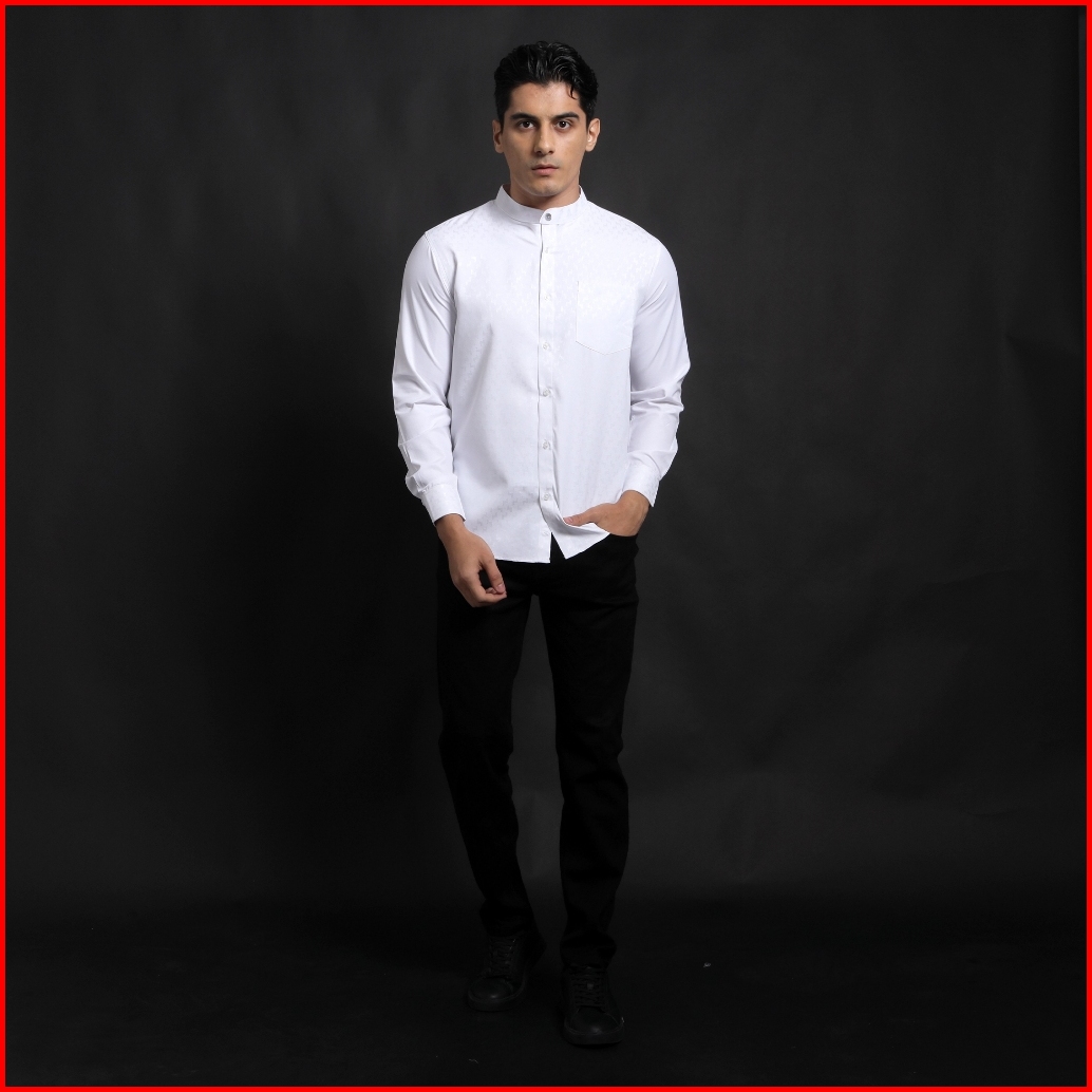 Casella Baju Koko Pria Lengan Panjang Putih Motif Elegan Baju Koko Putih Yusuf 9747 White